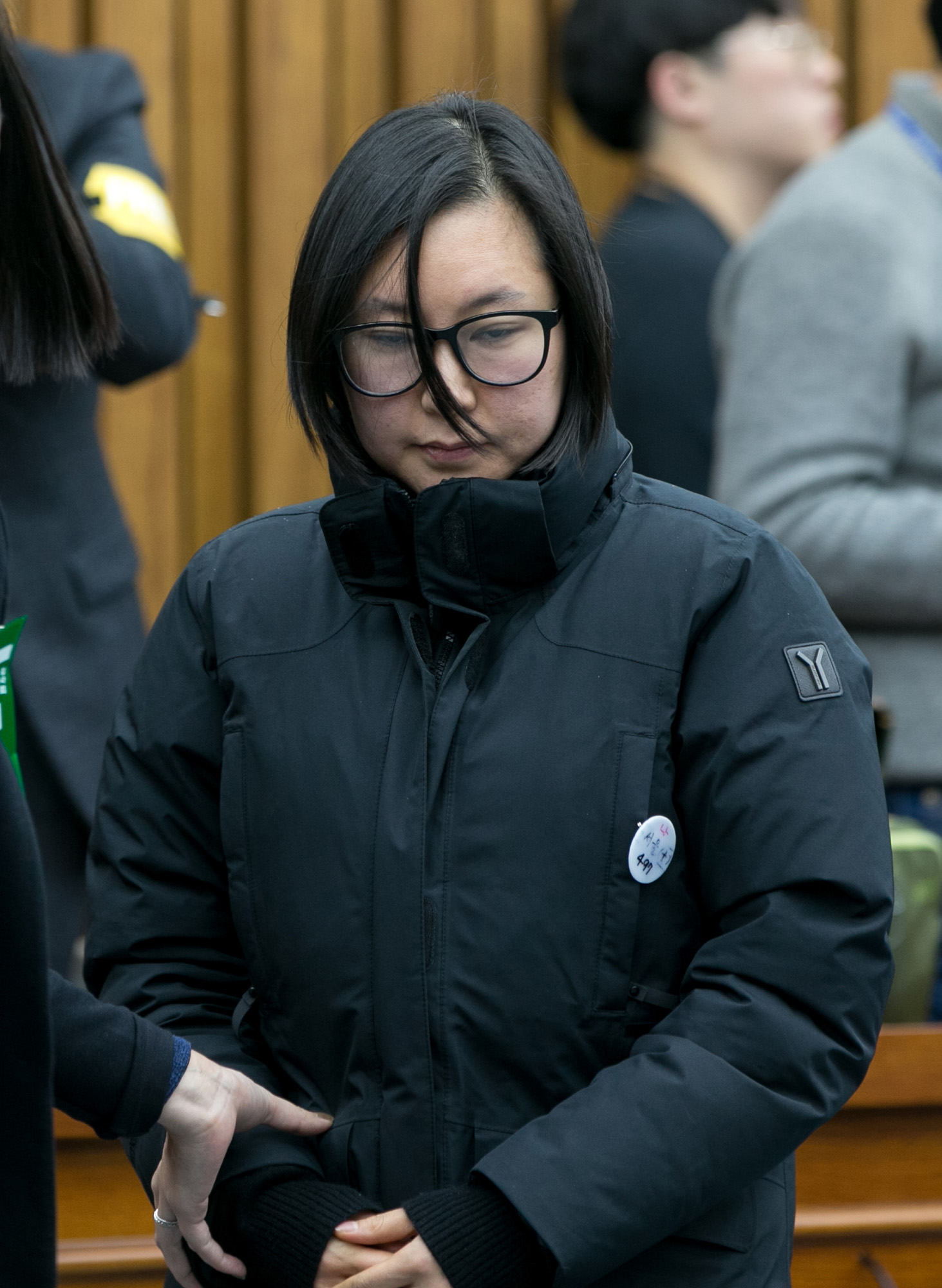 (서울=포커스뉴스) 최순실의 조카 장시호가 7일 오후 서울 여의도 국회에서 열린 '박근혜 정부의 최순실 등 민간인에 의한 국정농단 의혹사건 진실규명을 위한 국정조사특위 제2차 청문회'에 출석해 김성태 최순실게이트 국조특위 위원장에게 증인선서문을 전달한 뒤 자리로 돌아가고 있다. 161207 사진공동취재단 |