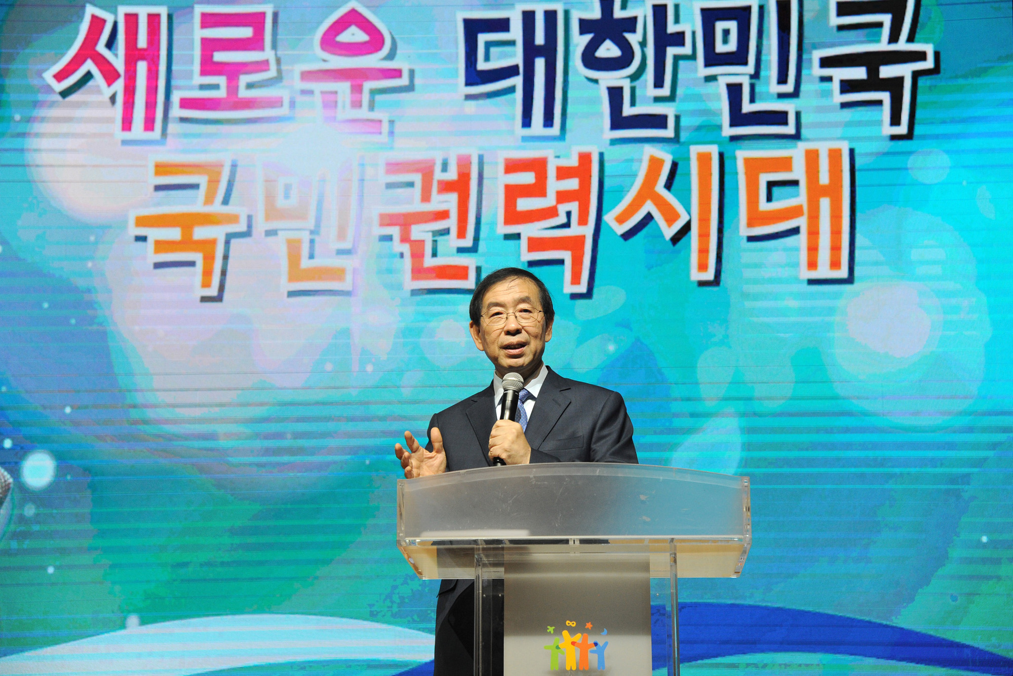 2일 오후 경기도 수원시 수원시청 대강당에서 열린 제78회 수원 포럼에서 박원순 서울시장과 염태영 수원시장이 토크 콘서트를 하고 있다. 서울시 제공