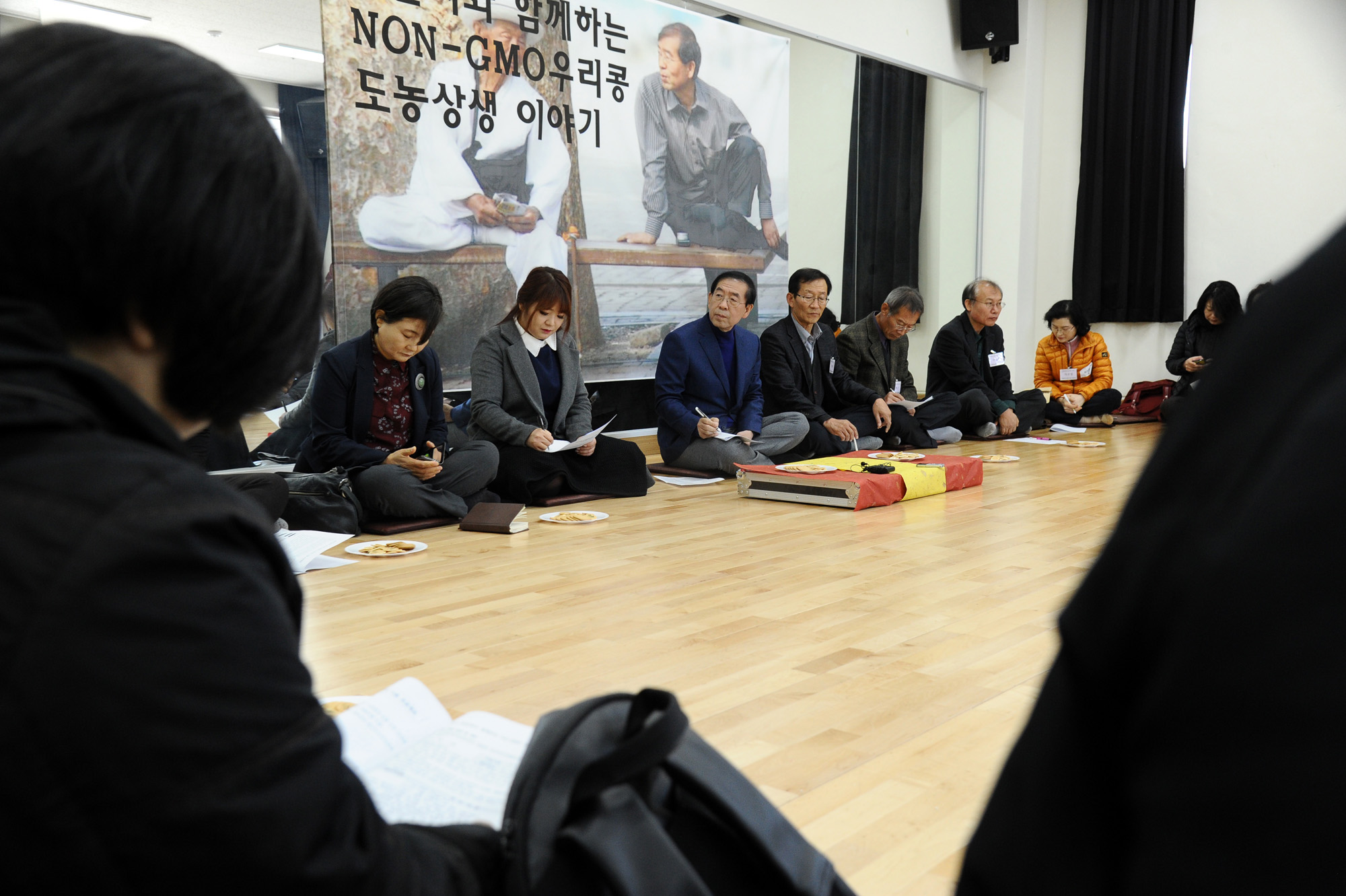 박원순 서울시장이 3일 충북 괴산군민체육센터에서 열린 제1회 도농상생 non-GMO 우리콩 어울림 마당' 행사에서 인사말을 하고 있다. 서울시 제공