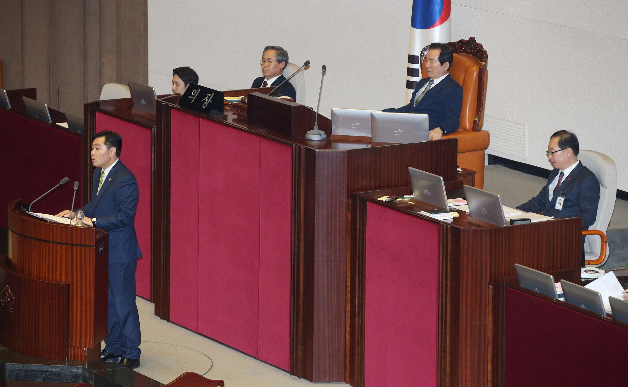 박근혜 대통령 탄핵소추안 표결이 이뤄지는 9일 오후 서울 여의도 국회에서 열린 제18차 본회의에서 김관영 국민의당 의원이 제안설명을 하고 있다. 2016.12.09 머니투데이 이동훈