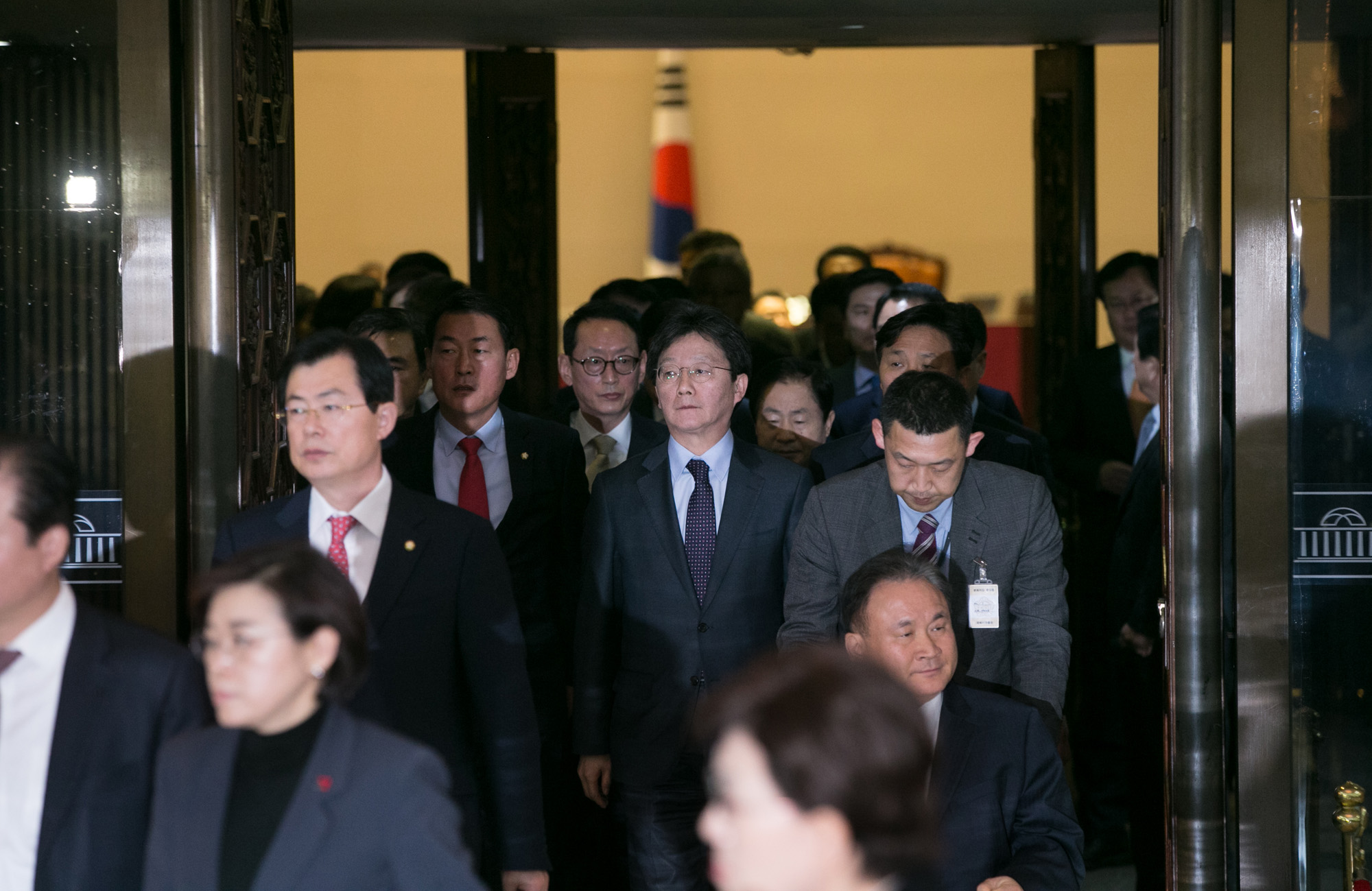 박근혜 대통령 탄핵소추안이 가결된 9일 오후 국회에서 표결을 마친 의원들이 본회의장을 퇴장하고 있다.