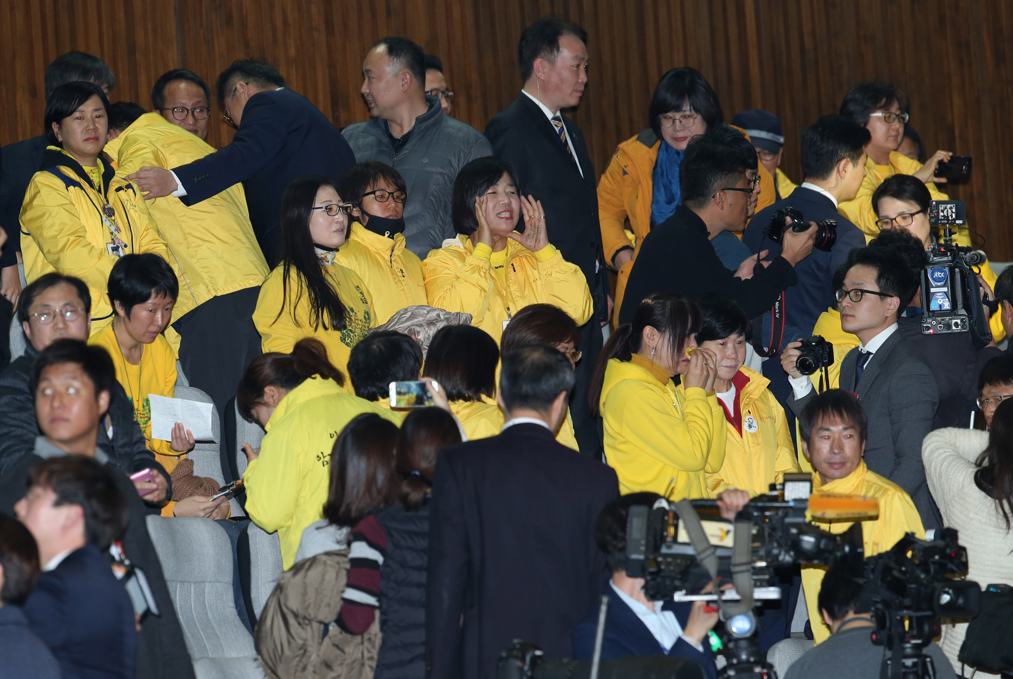 박근혜 대통령 탄핵소추안이 가결된 9일 오후 서울 여의도 국회에서 열린 제18차 본회의에서 투표결과가 발표된 뒤 방청하던 세월호 유가족들이 환호하고 있다. 2016.12.09 머니투데이 이동훈