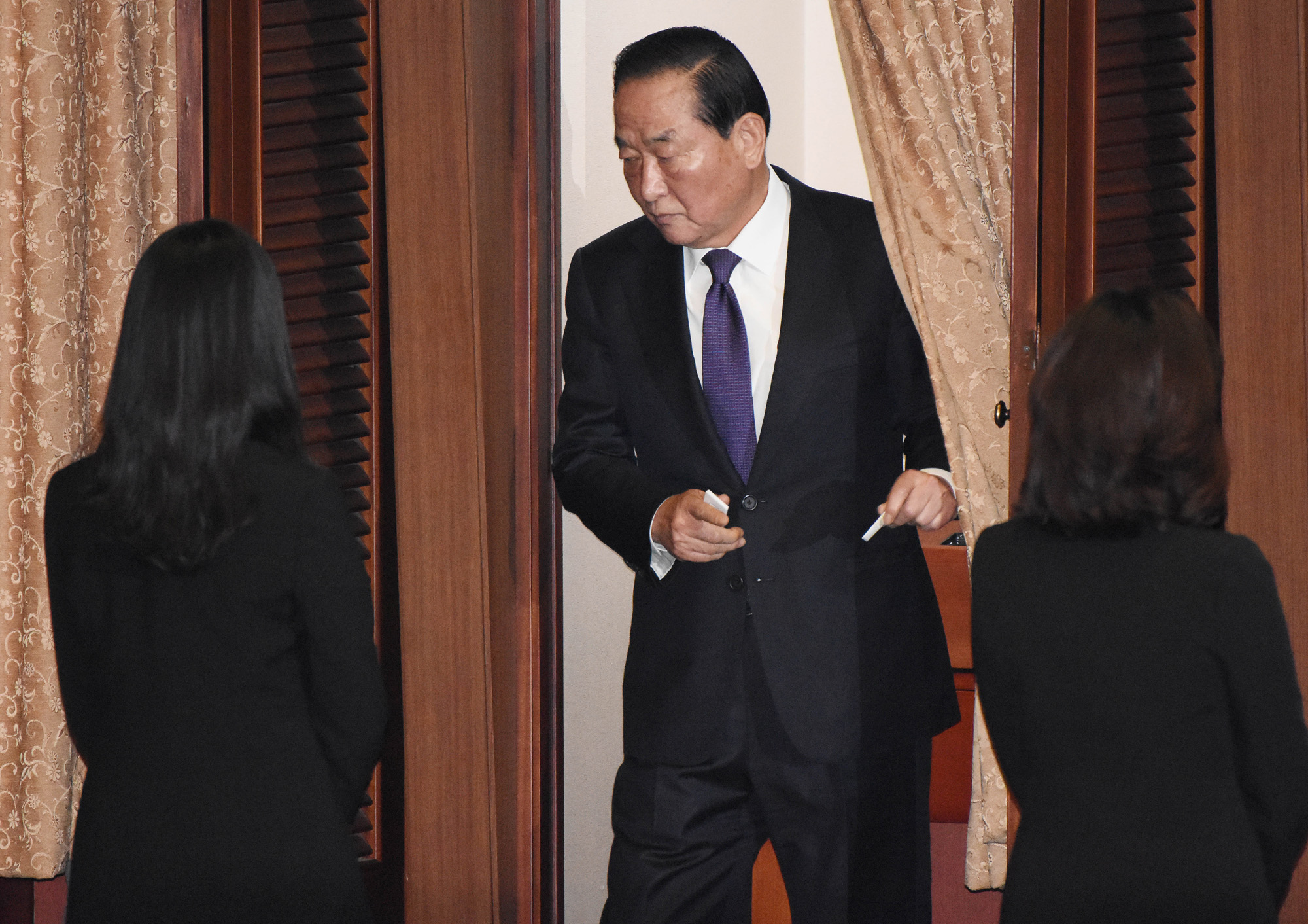 서청원 새누리당 의원이 9일 오후 서울 여의도 국회 본회장에서 야 3당이 발의한 박근혜 대통령 탄핵소추안에 대한 투표 후 투표소를 나서고 있다.