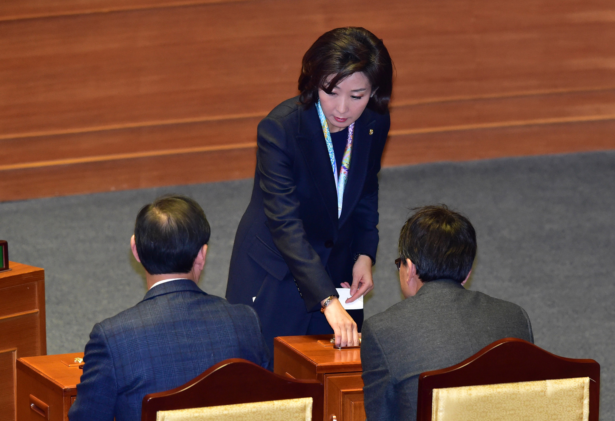아시아투데이 이병화 기자 = 나경원 새누리당 의원이 9일 국회에서 열린 박근혜 대통령 탄핵소추안 표결을 위한 본회의에서 투표를 하고 있다. /이병화 기자photolbh@