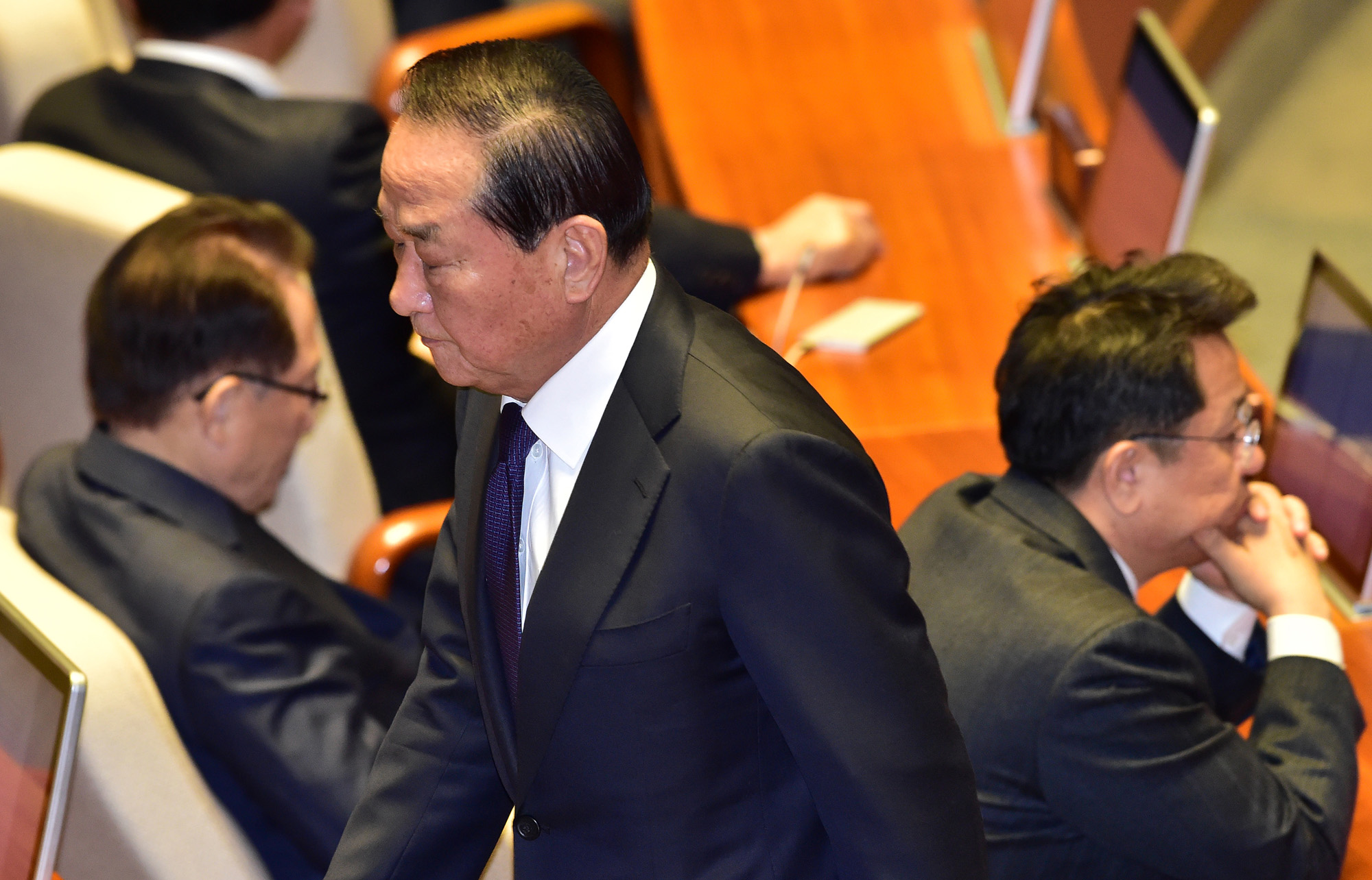 아시아투데이 이병화 기자 = 서청원 새누리당 의원이 9일 국회에서 열린 박근혜 대통령 탄핵소추안 표결을 위한 본회의에서 투표를 마친 뒤 이동하고 있다. /이병화 기자photolbh@