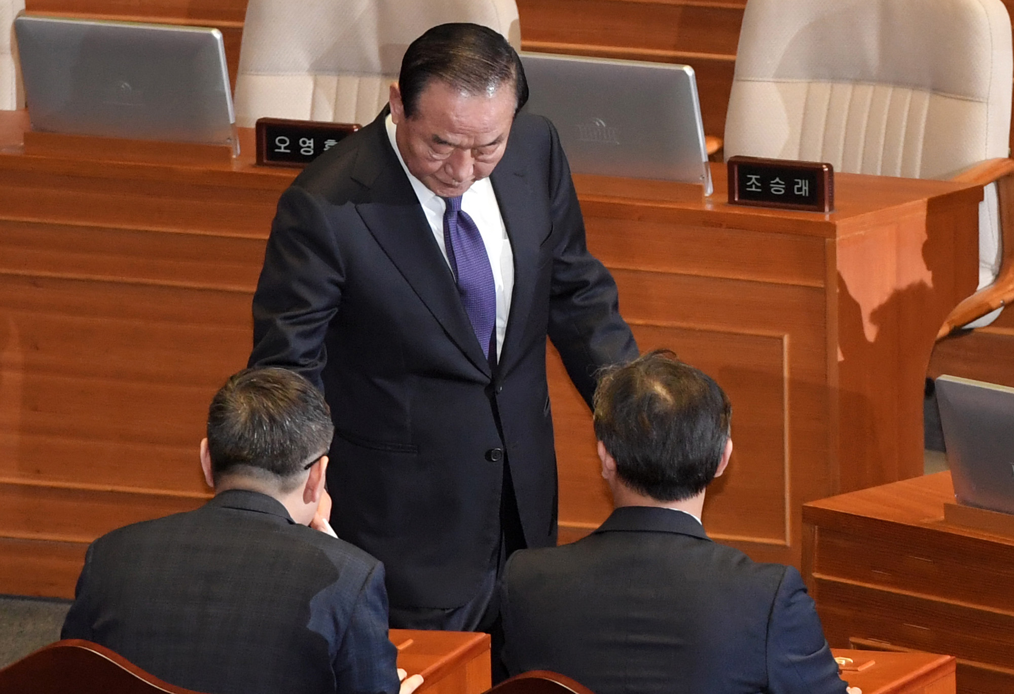 새누리당 서청원 의원이 9일 오후 서울 여의도 국회 본회의장에서 박근혜 대통령 탄핵소추안에 대한 무기명투표를 하고 있다.