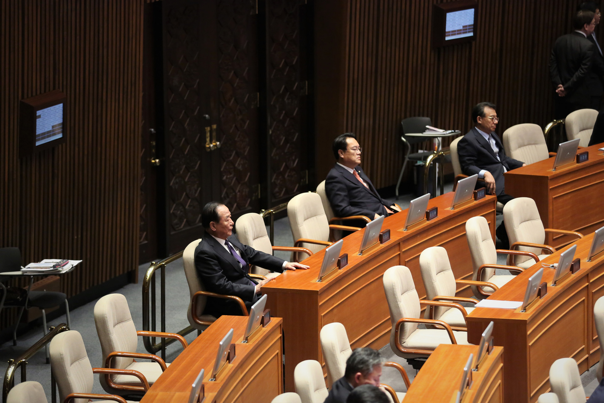서청원 새누리당 의원이 9일 오후 서울 여의도 국회에서 열린 박근혜 대통령 탄핵소추안 가부를 결정짓는 본회의에 참석해 있다.