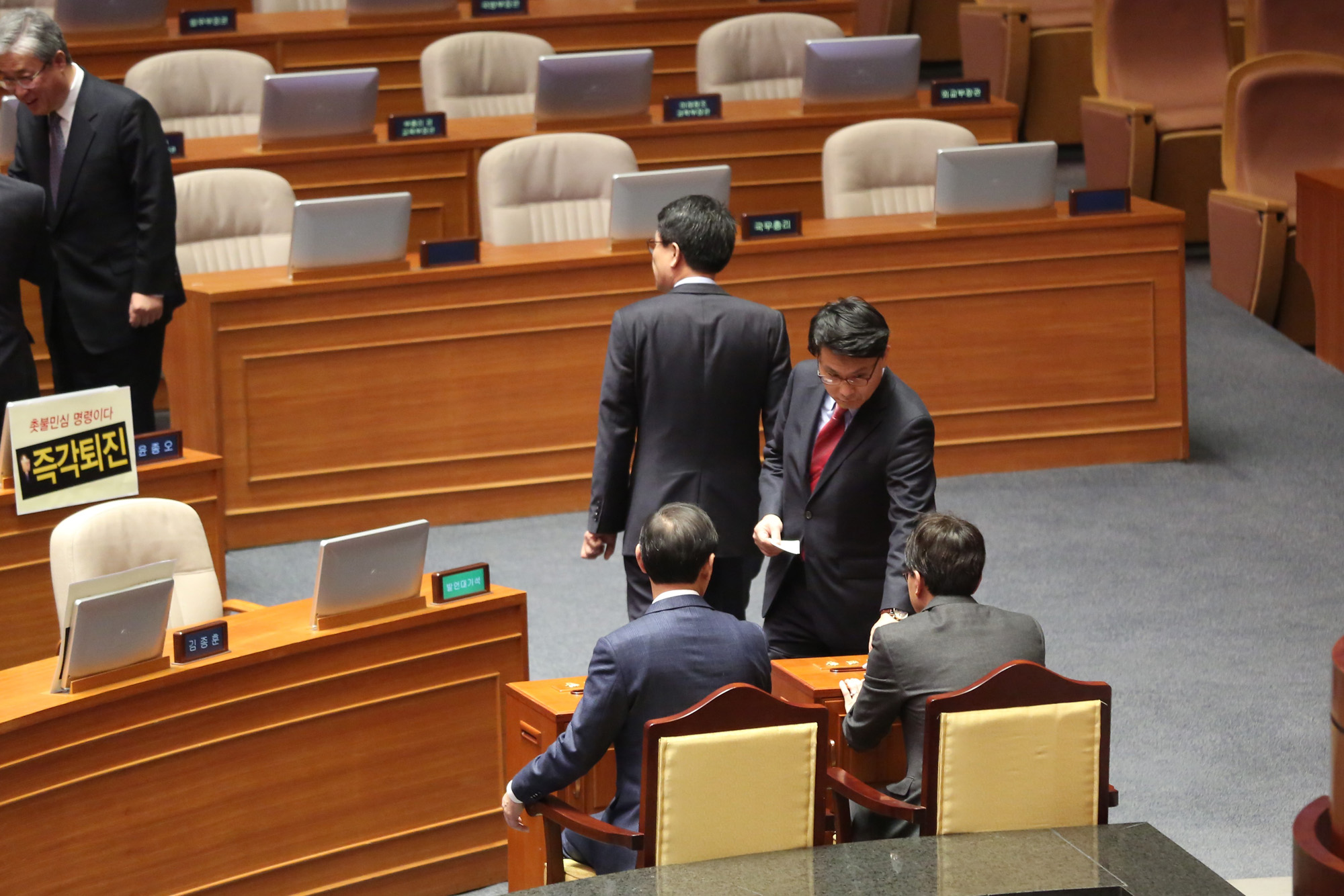 윤상현 새누리당 의원이 9일 오후 국회 본회의장에서 열린 박근혜 대통령 탄핵소추안에 투표에 참여하고 있다.