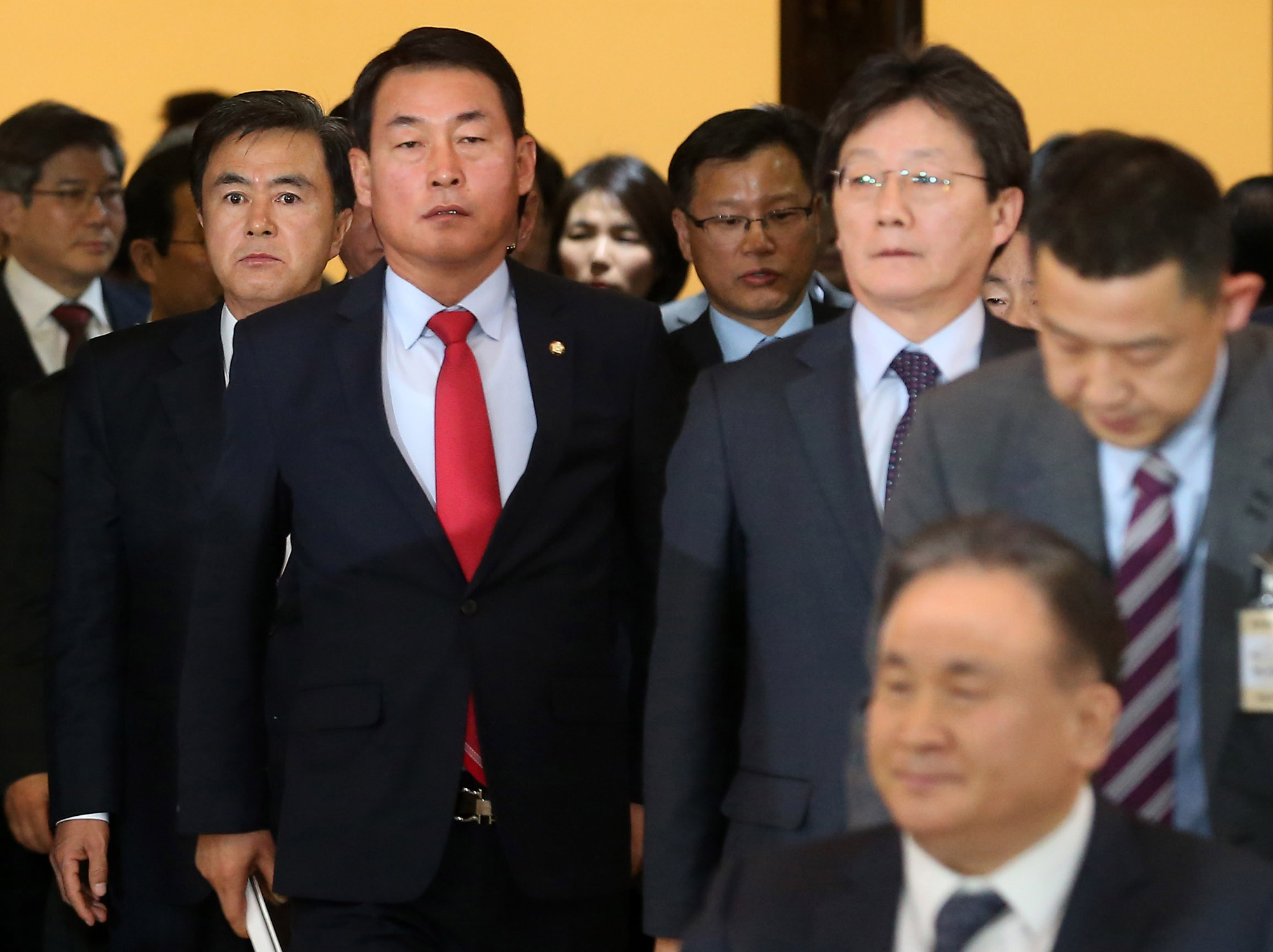 박근혜 대통령 탄핵 표결안 처리가 가결된 9일 오후 유승민 새누리당 의원과 황영철 의원이 본회의장을 나서고 있다.