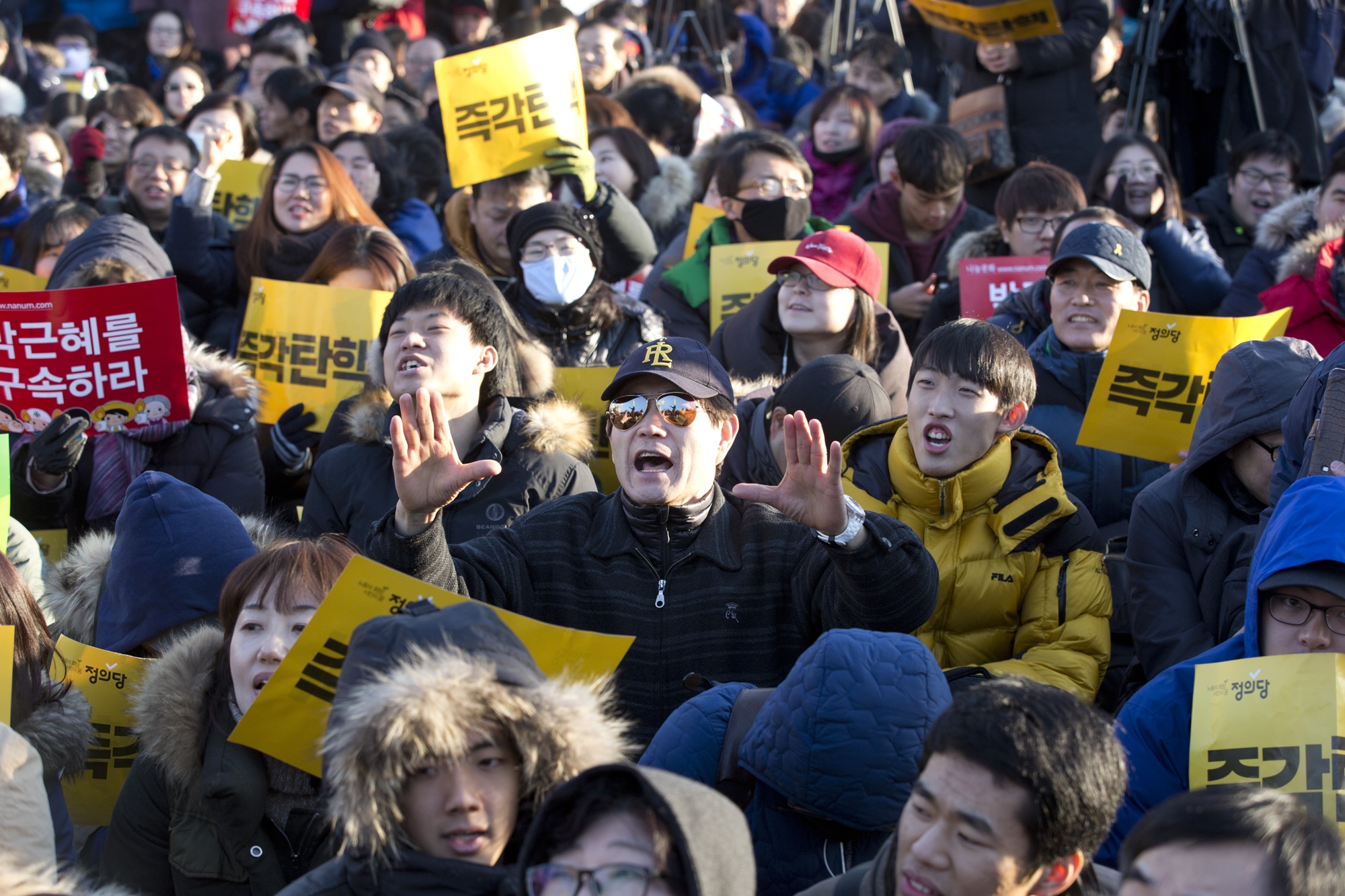 박근혜 대통령 탄핵소추안 가결 환호하는 시민들