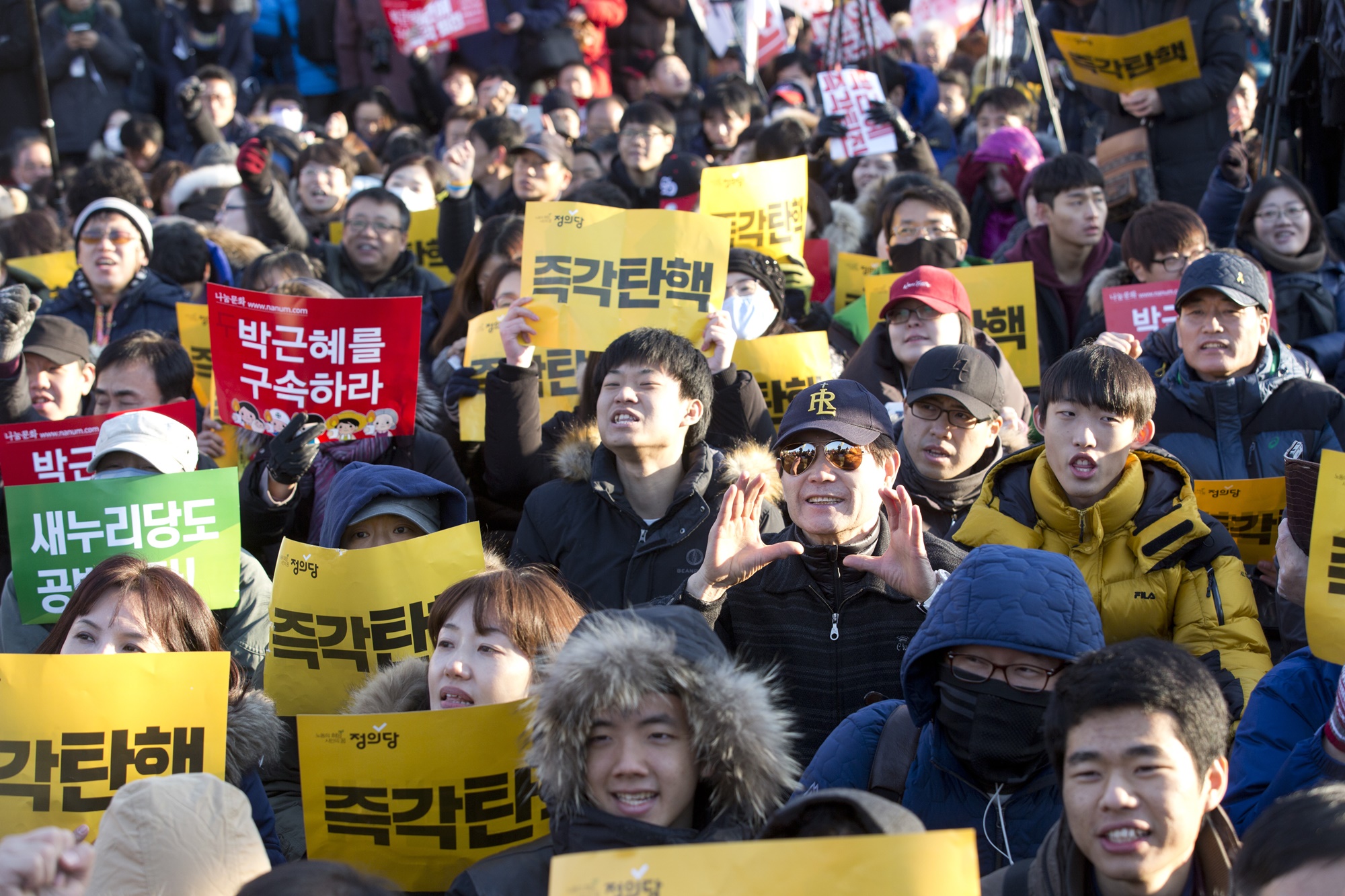 박근혜 대통령 탄핵소추안 가결 환호하는 시민들
