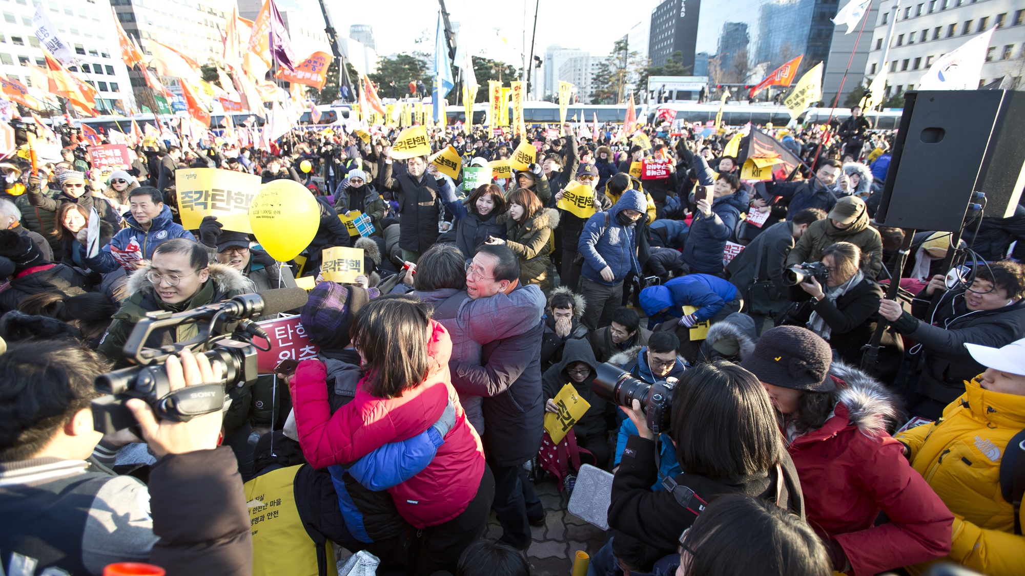 박근혜 대통령 탄핵소추안 가결 환호하는 시민들