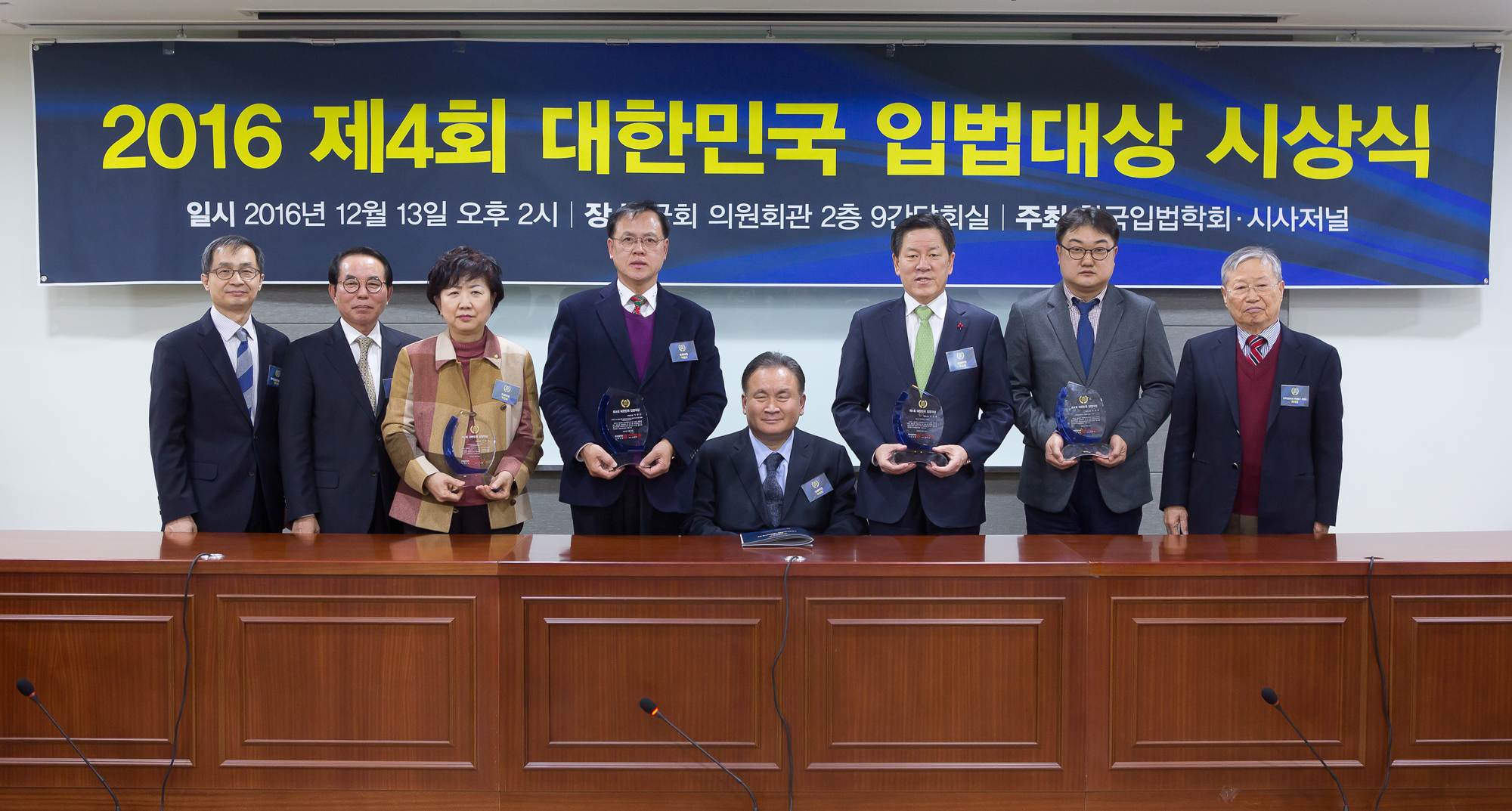 [서울=eoimage] 임준선 =한국입법학회와 시사저널이 공동으로 선정·발표한 「제4회 대한민국 입법대상」시상식이 여의도 의원회관에서 열렸다. 사진은 입법대상 수상자들이 기념촬영을 하고 있다.