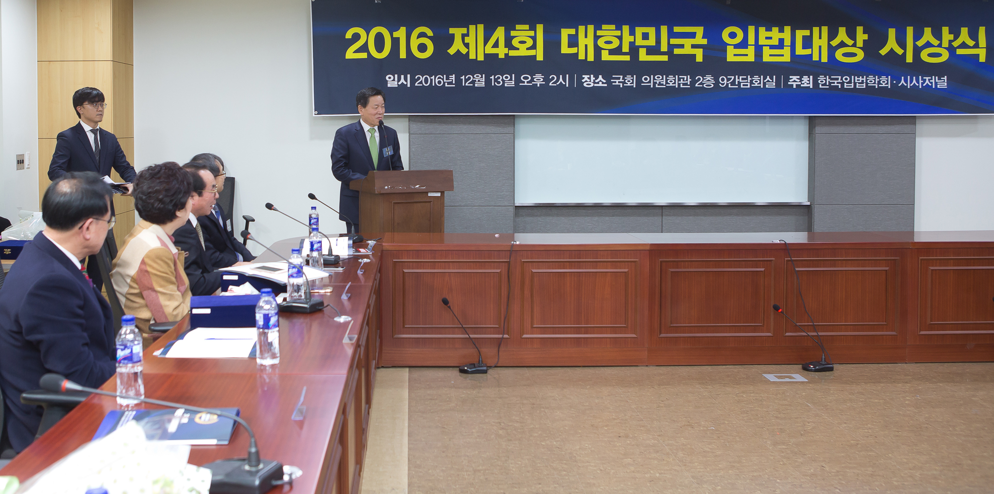[서울=eoimage] 임준선 =한국입법학회와 시사저널이 공동으로 선정·발표한 「제4회 대한민국 입법대상」시상식이 여의도 의원회관에서 열렸다. 사진은 주승용 의원이 수상을 마치고 소감을 밝히고 있다.