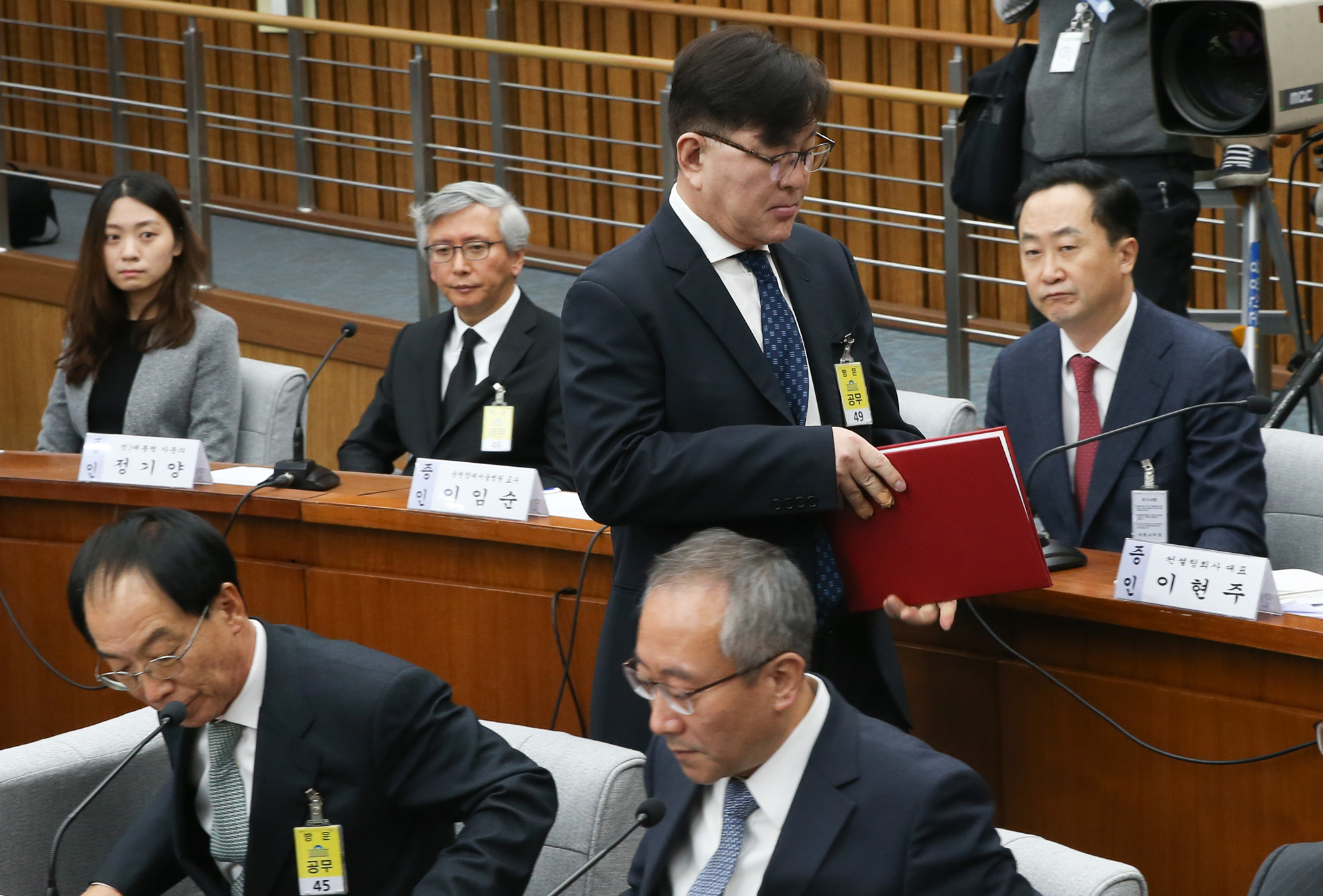김영재 김영재의원 원장이 14일 서울 여의도 국회에서 열린 '박근혜 정부의 최순실 등 민간인에 의한 국정농단 의혹사건 진상규명을 위한 국정조사특별위원회 청문회'에 출석해 대표선서를 위해 선서대로 향하고 있다. 2016.12.14/뉴스1 161214 박은숙 기자 |