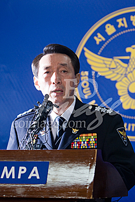 [서울=eoimage]박은숙기자= 서울경찰청 내정자 김석기 서울지방경찰청장이 10일 오전 서울지방경찰청에서 기자회견을 열어 자진 사퇴의사를 밝히고 있다.2009.02.10. eomaster@eoimage.com(끝)