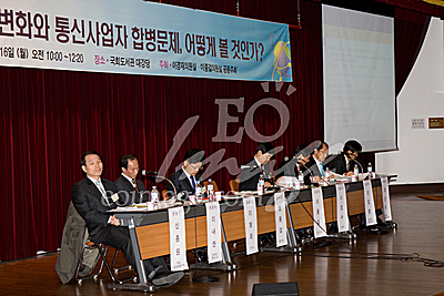 [서울=Eoimage] 이종현 기자 = 16일 오전 국회도서관 강당에서 열린 '통신시장 환경변화와 통신사업자 합병문제, 어떻게 볼 것인가?' 세미나에 참석한 패널들 2009.02.16 eomaster@eoimage.com(끝)