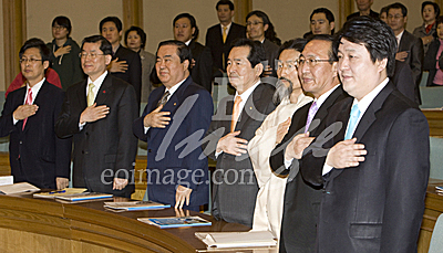 | 사진설명 | [서울=eoimage]임영무기자= 23일 국회 의원회관에서 (사)한반도평화경제연구원(최성 원장) 주최로 열린 이명박 정부 출범 1주년 '이명박 대통령에게 고(告)한다' 세미나에서 야당 대표들이 국민의례를하고 있다. 왼쪽부터 최성 원장, 문국현 창조한국당 대표, 문희상 국회부의장, 정세균 민주당 대표, 강기갑 민노당 대표, 노회찬 진보신당 대표, 고진화 전의원 2009.02.23 eomaster@eoimage.com(끝) |