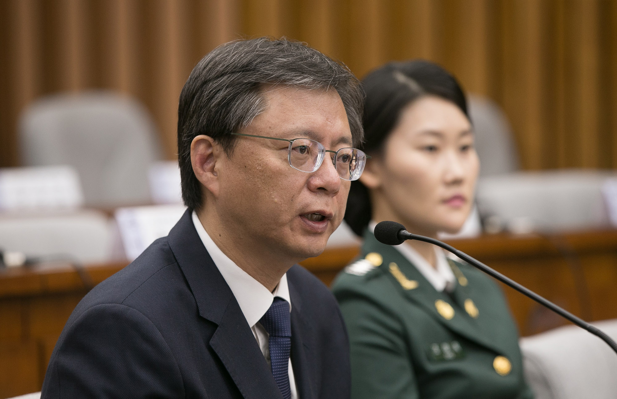 우병우 전 청와대 민정수석이 22일 오전 국회에서 열린 '박근혜 정부의 최순실 등 민간인에 의한 국정농단 의혹사건 진상규명을 위한 국정조사 특별위원회' 5차 청문회에 출석해 질의에 답하고 있다.