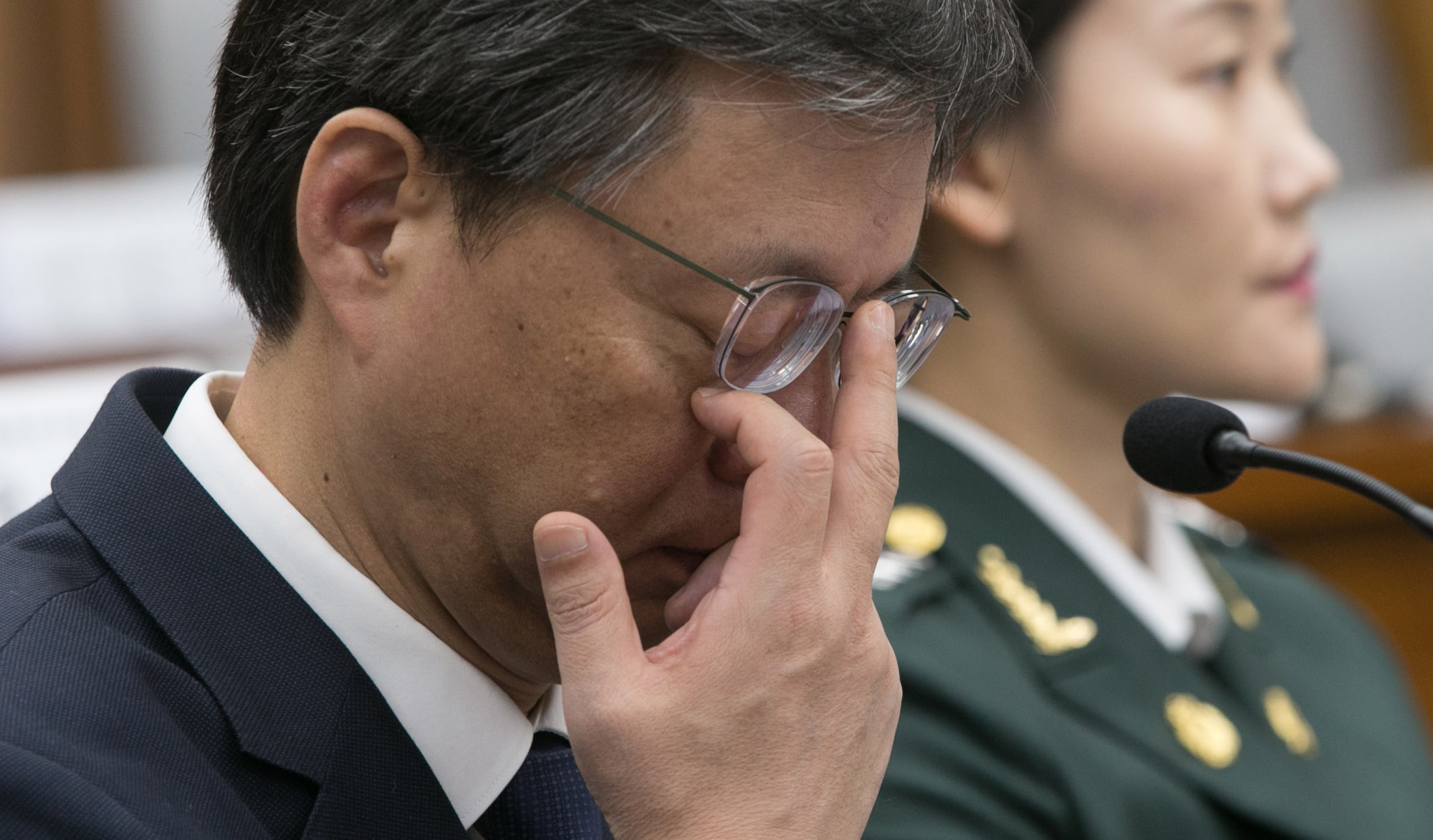 우병우 전 청와대 민정수석이 22일 오전 국회에서 열린 '박근혜 정부의 최순실 등 민간인에 의한 국정농단 의혹사건 진상규명을 위한 국정조사 특별위원회' 5차 청문회에 출석해 안경을 고쳐쓰고 있다.