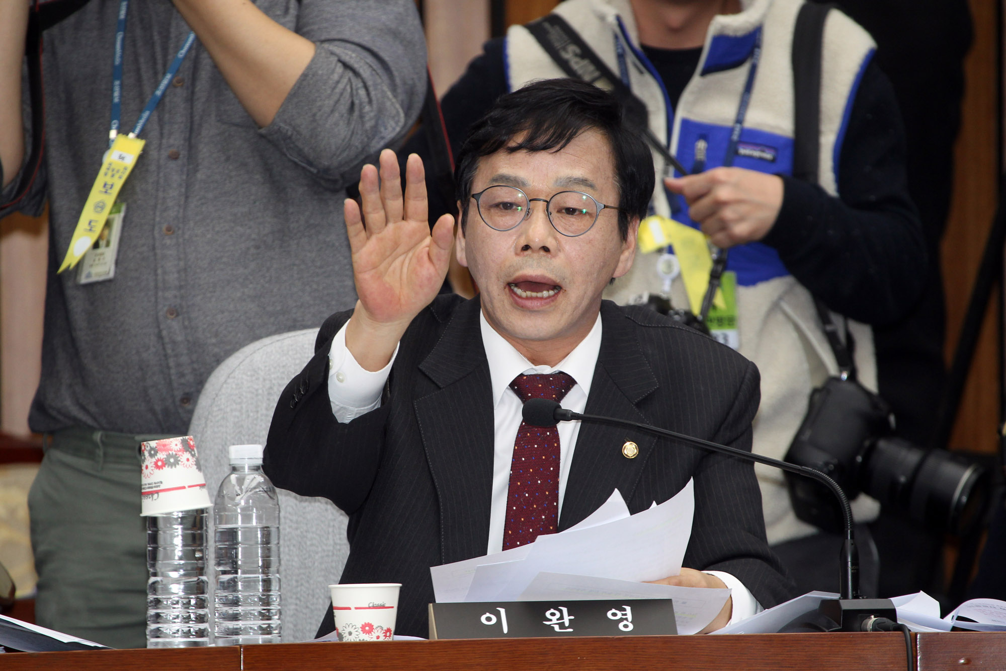 22일 오전 국회에서 열린'박근혜정부의 최순실등 민간인에 의한 국정농단 의혹사건 진실규명을 위한 국정조사 특위 제5차 청문회'에서 새누리당 이완영의원이 자신의 위증교사의혹에 반대입장을 설명하고 있다 .