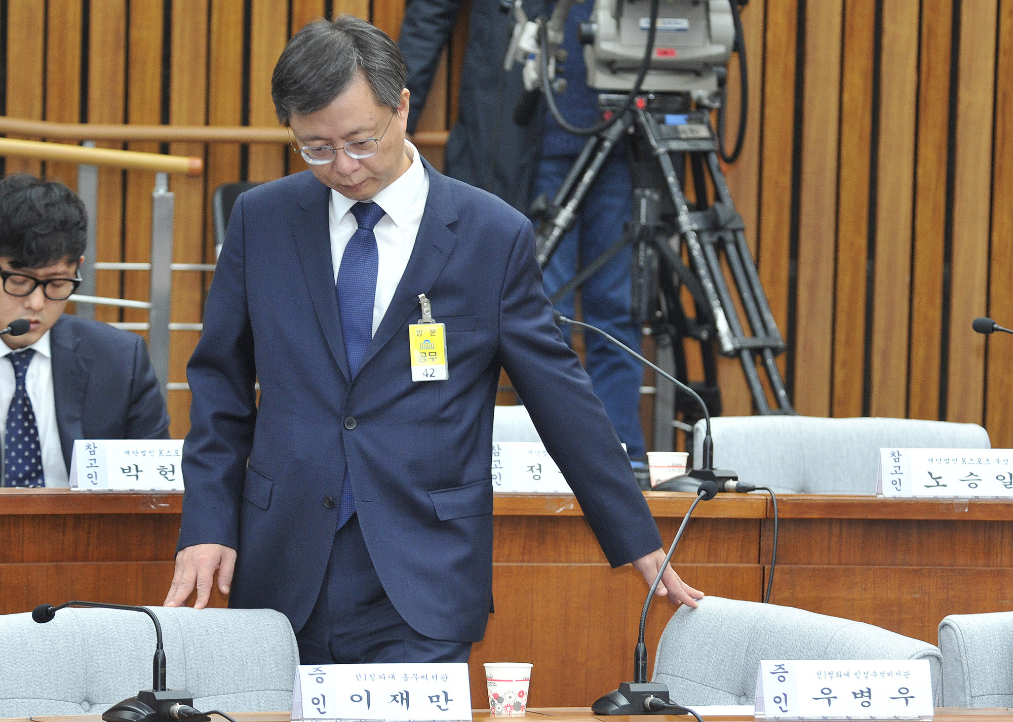 우병우 전 청와대 민정수석비서관이 22일 오후 국회에서 열린 '박근혜 정부의 최순실 등 민간인에 의한 국정농단 의혹 사건 진상 규명을 위한 국회 국정조사특별위원회 제5차 청문회'에 출석해 자리에 앉고 있다. 2016.12.22 사진공동취재단