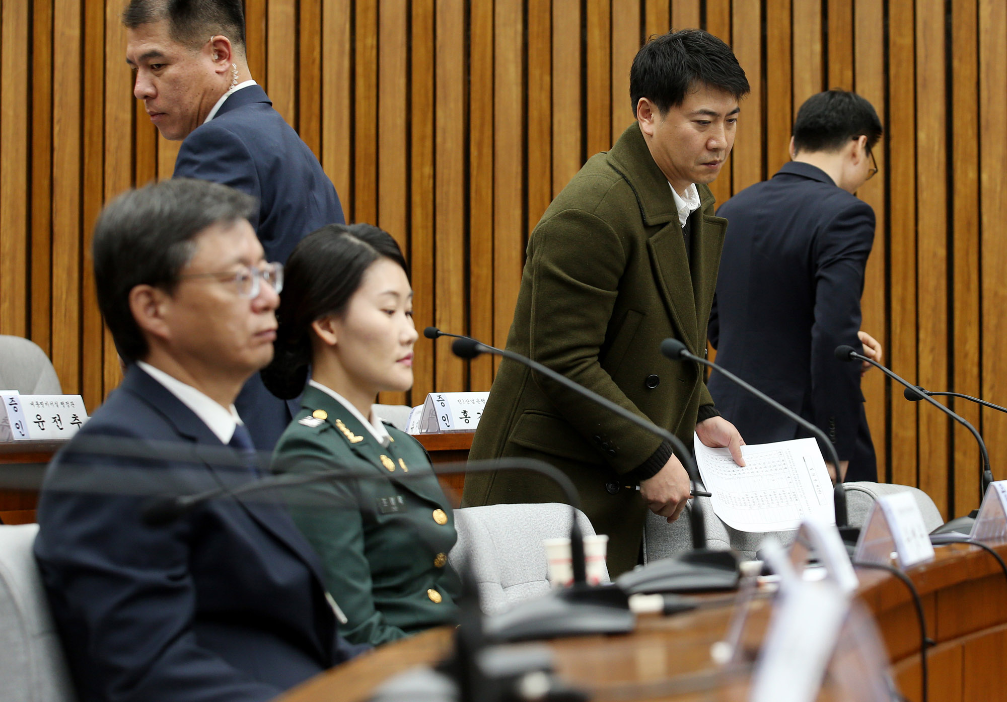참고인으로 출석한 노승일 전 K스포츠재단 부장이 22일 오전 서울 여의도 국회에서 열린 '박근혜 정부의 최순실 등 민간인에 의한 국정농단 의혹 사건 진상 규명을 위한 국회 국정조사특별위원회' 제5차 청문회에서 증인으로 채택돼 증인석으로 자리를 옮기고 있다.2016.12.22 사진공동취재단