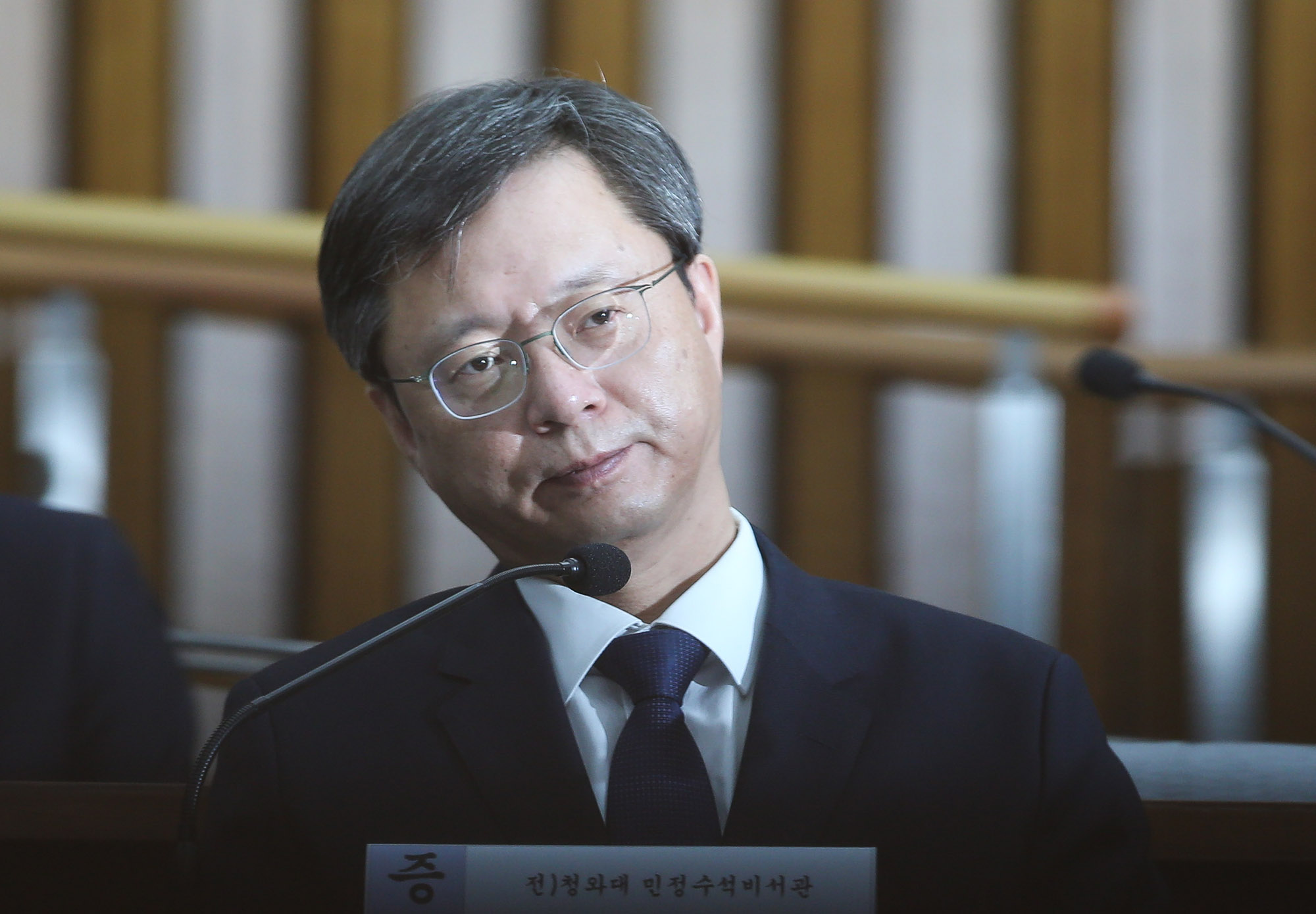 우병우 전 청와대 민정수석이 22일 서울 여의도 국회에서 열린 박근혜 정부의 최순실 등 민간인에 의한 국정농단 의혹사건 진실규명을 위한 국정조사특위 제5차 청문회에 출석해 의원석을 바라보고 있다. 2016.12.22 사진공동취재단