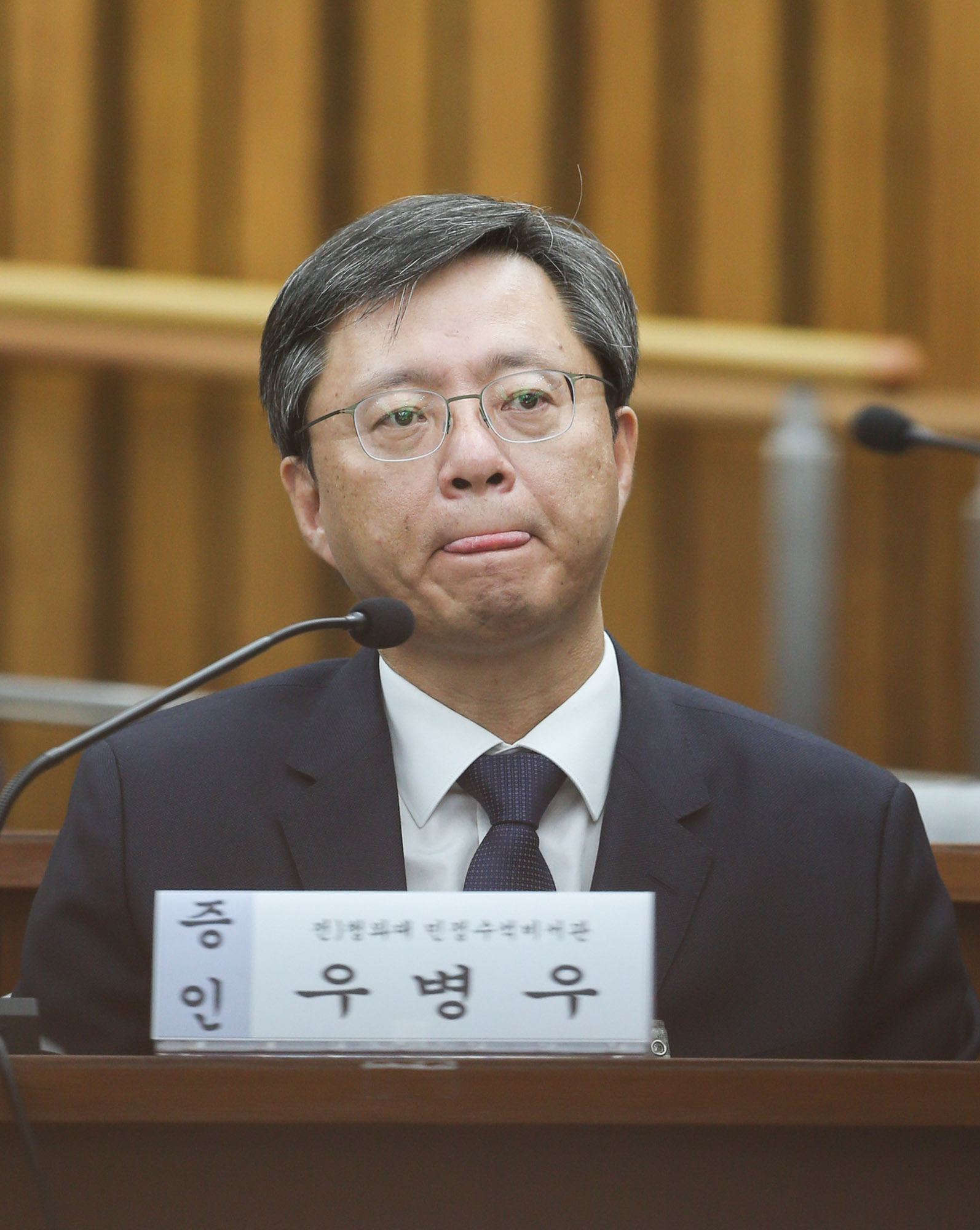 우병우 전 청와대 민정수석이 22일 서울 여의도 국회에서 열린 박근혜 정부의 최순실 등 민간인에 의한 국정농단 의혹사건 진실규명을 위한 국정조사특위 제5차 청문회에 출석해 생각에 잠겨 있다.2016.12.22 사진공동취재단