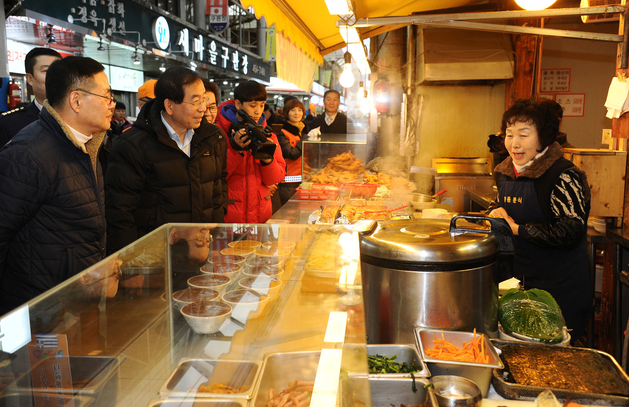 박원순 서울시장이 19일 오후 서울 광진구 자양골목시장을 방문해 시장에 설치 된 소방시설을 살피고 있다. 서울시 제공