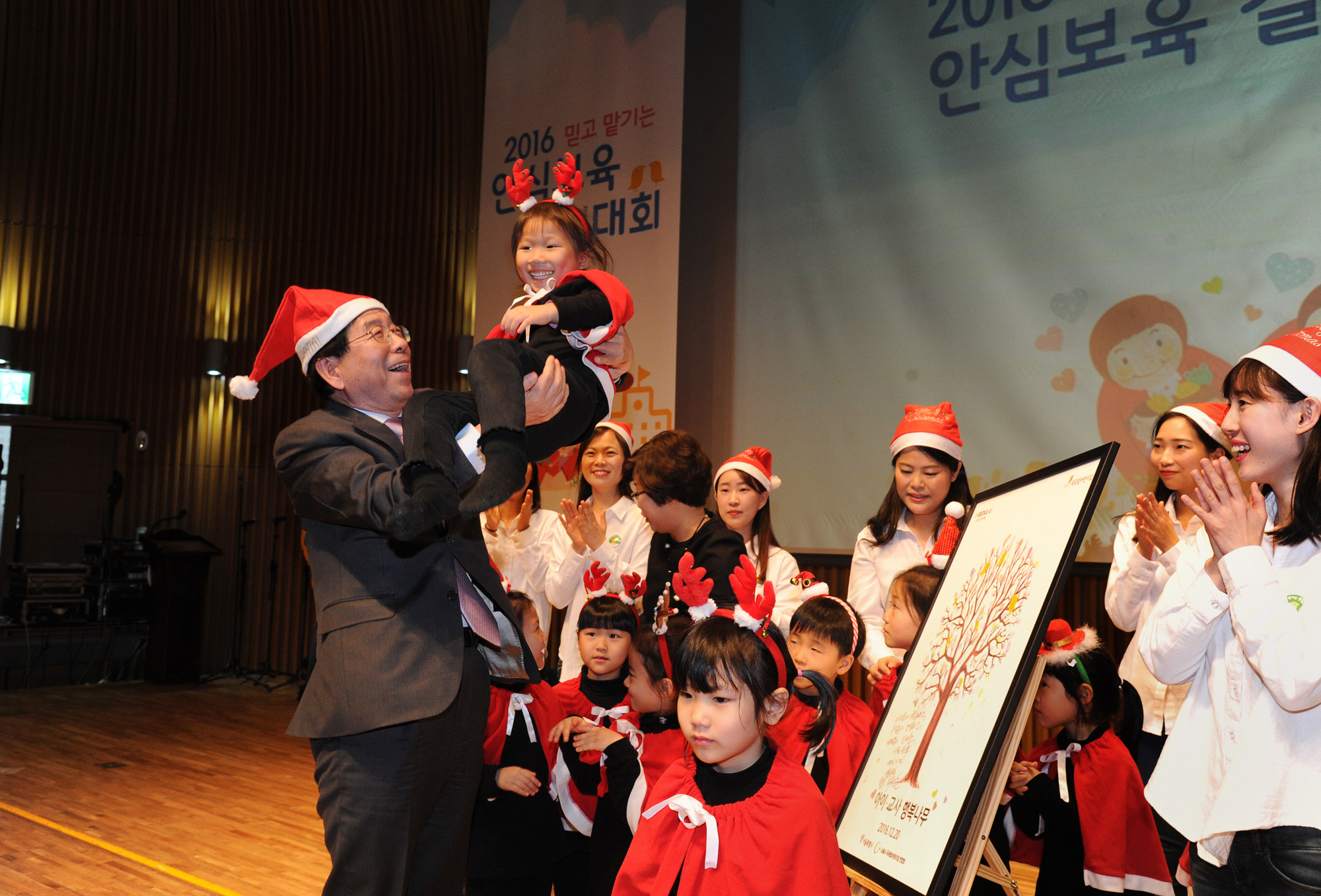 20일 서울 시청 다목적홀에서 열린 2016 믿고 맡기는 안심보육 결의대회에서 박원순 시장이 격려사를 하고 있다. 서울시 제공