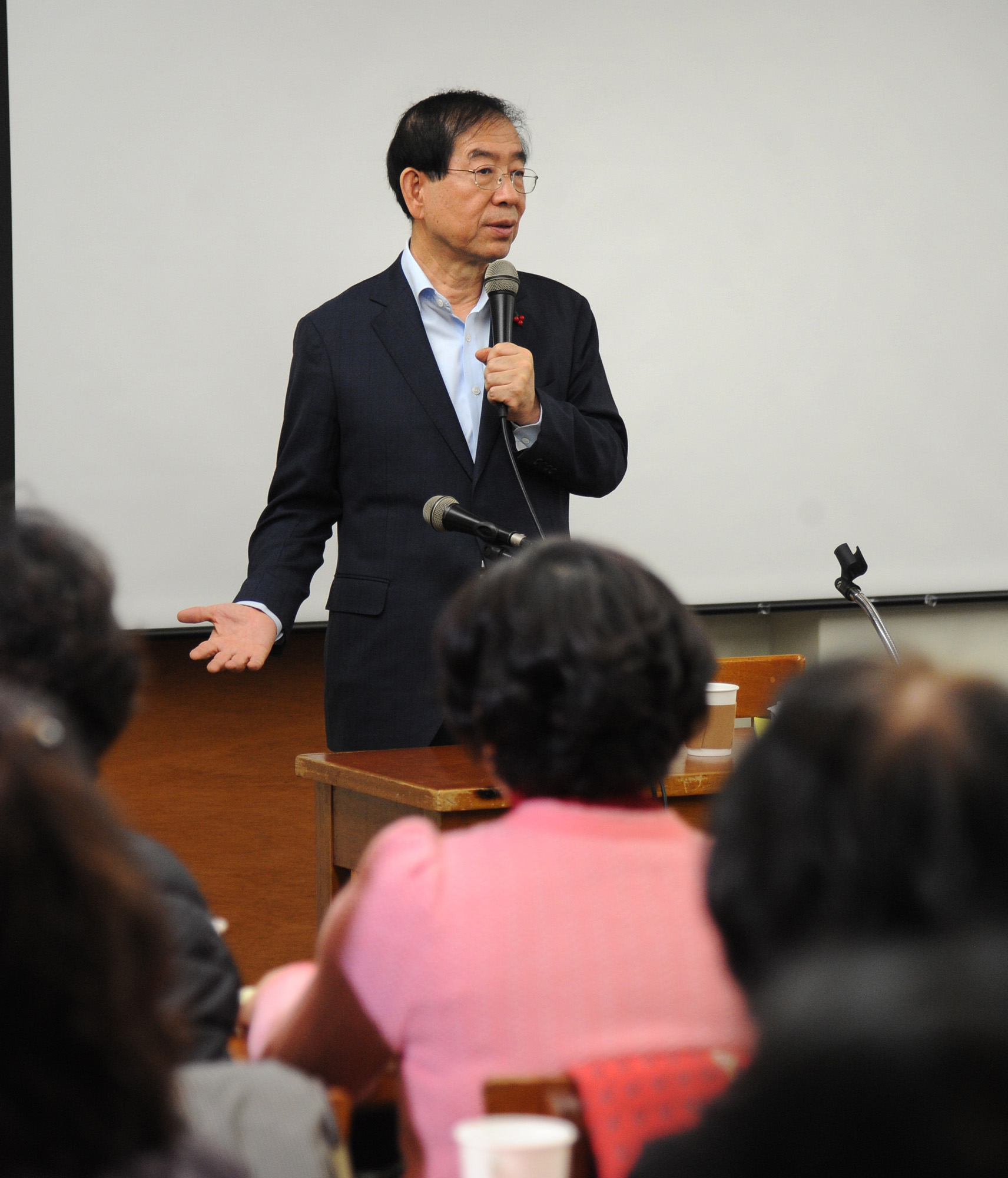 박원순 서울시장이 23일 '희망온돌 무박 2일 투어'로 서울 성북구 장위동 다솔지역아동센터에서 아이돌보미 봉사활동을 하고 있다. 서울시 제공