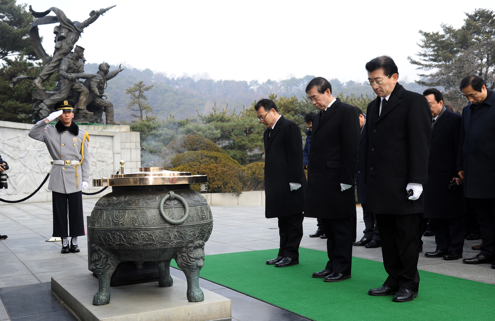 1일 오전 새해를 맞아 박원순 서울시장이 서울 동작동 국립현충원을 참배하고 방명록을 쓰고 있다. 서울시 제공