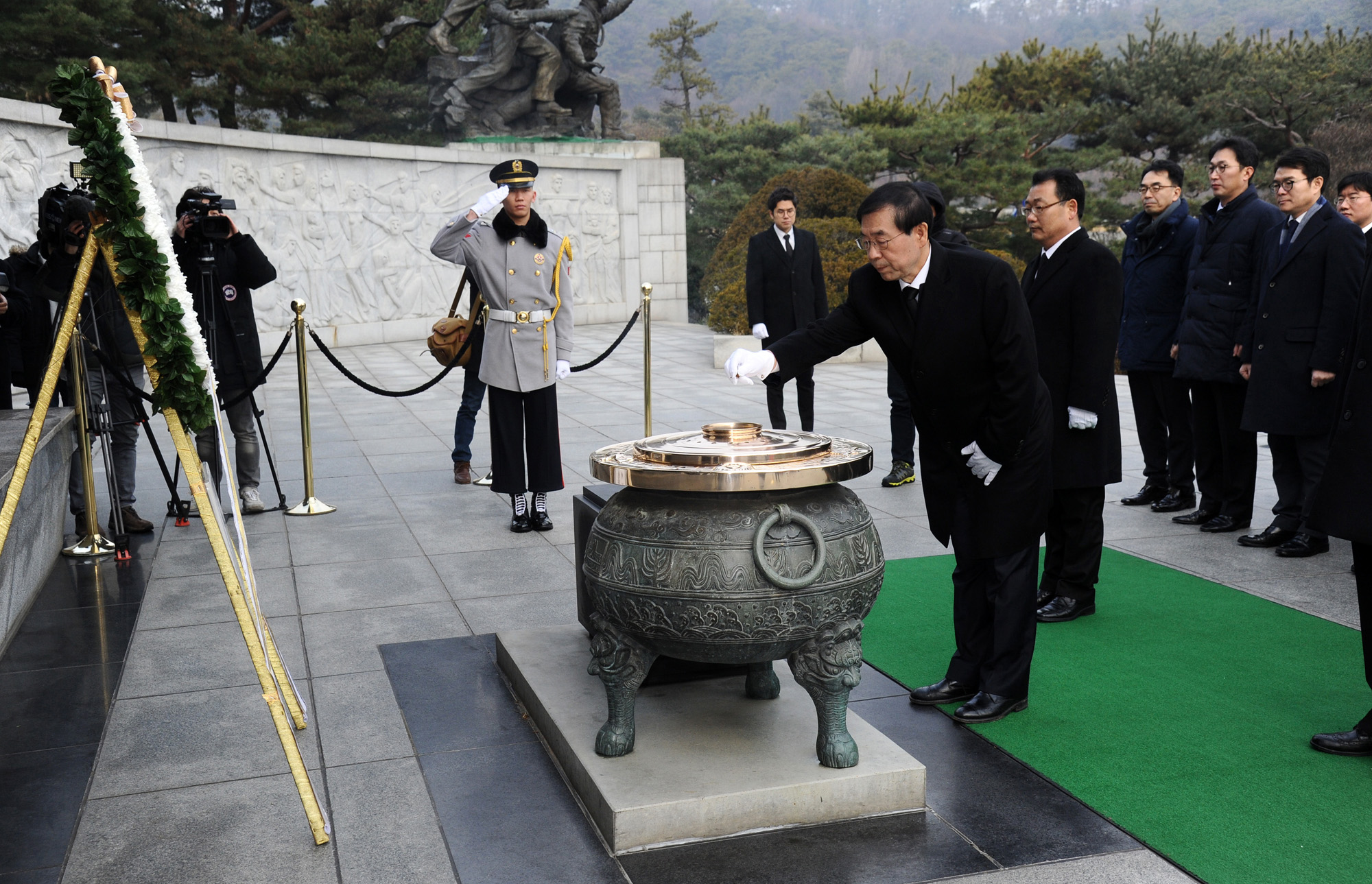1일 오전 새해를 맞아 박원순 서울시장이 서울 동작동 국립현충원을 참배하고 방명록을 쓰고 있다. 서울시 제공