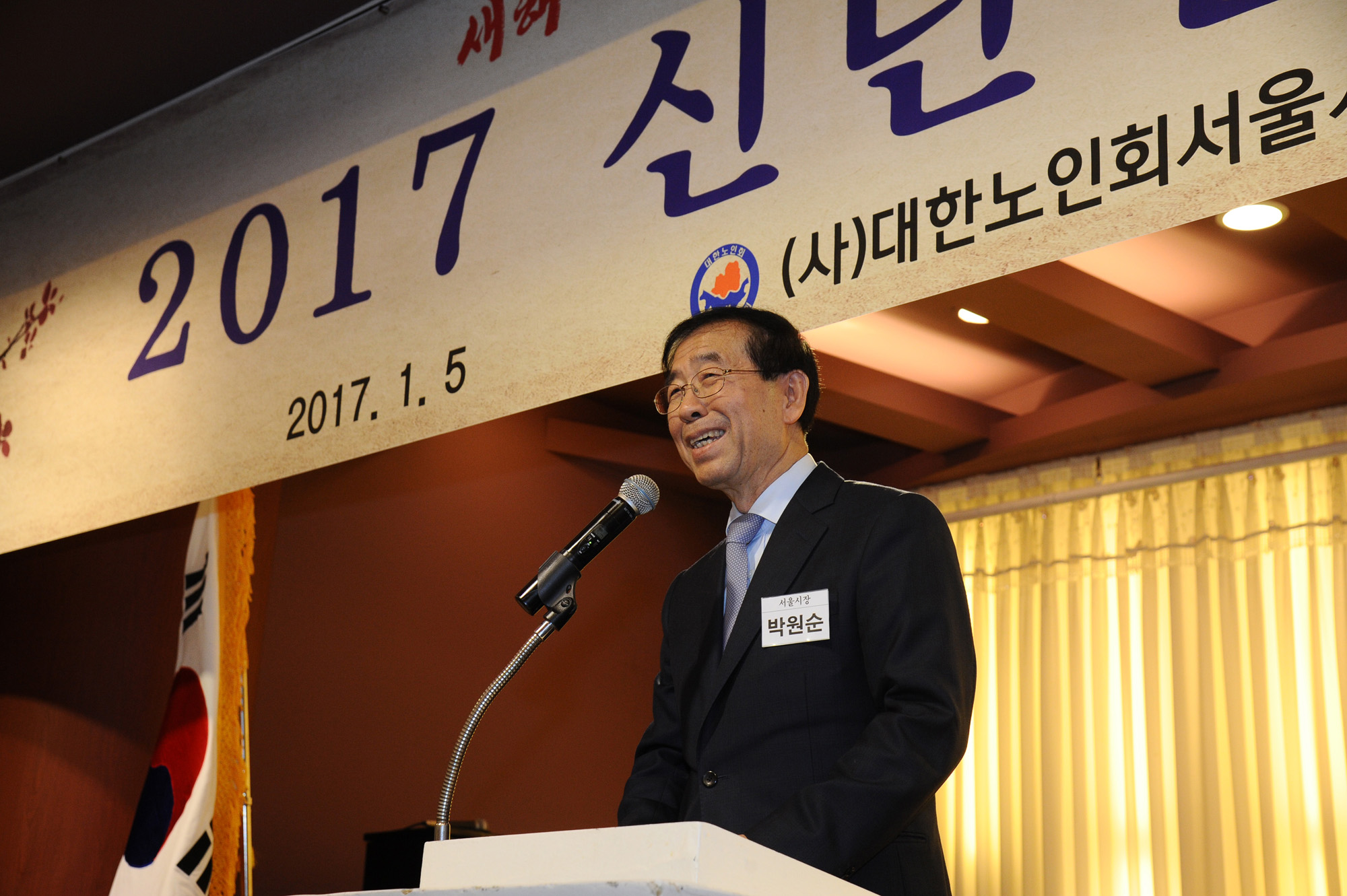 박원순 서울시장이 5일 오후 서울 종로구 하림각에서 열린 '대한노인회 신년인사회'에서 참석자들과 대화를 나누고 있다. 서울시 제공