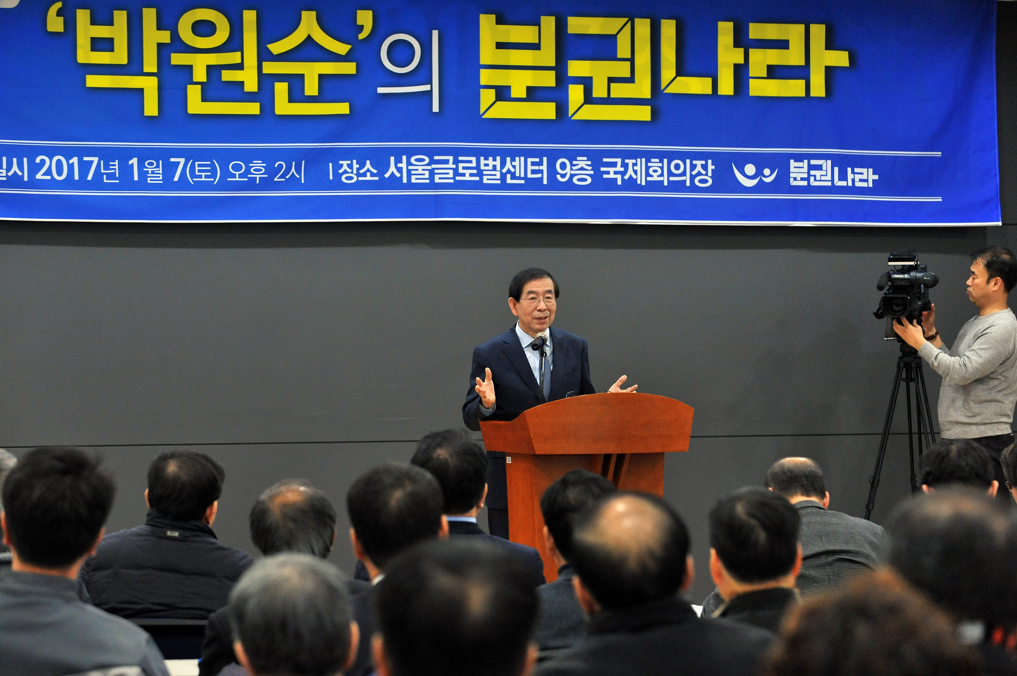박원순 서울시장이 7일 오후 서울 종로구 서울글로벌센터에서 열린 박 시장의 대권행보를 지지하는 지방자치단체장·지방의원 모임 '분권나라 2017' 창립식에 참석해 특강을 하고 있다. 서울시 제공