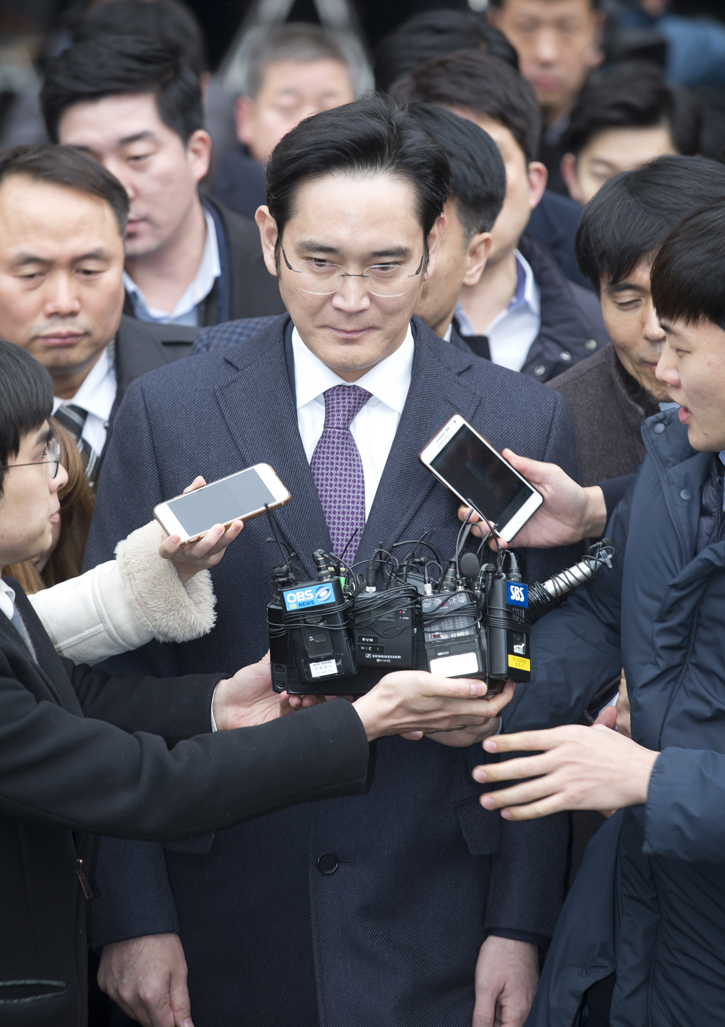 [eoimage=서울] 임준선 기자 =18일 오후 이재용 삼성전자 부회장이 구속영장 실질심사를 마치고 굳은표정으로 법원에서 나오고 있다. 2017.01.18