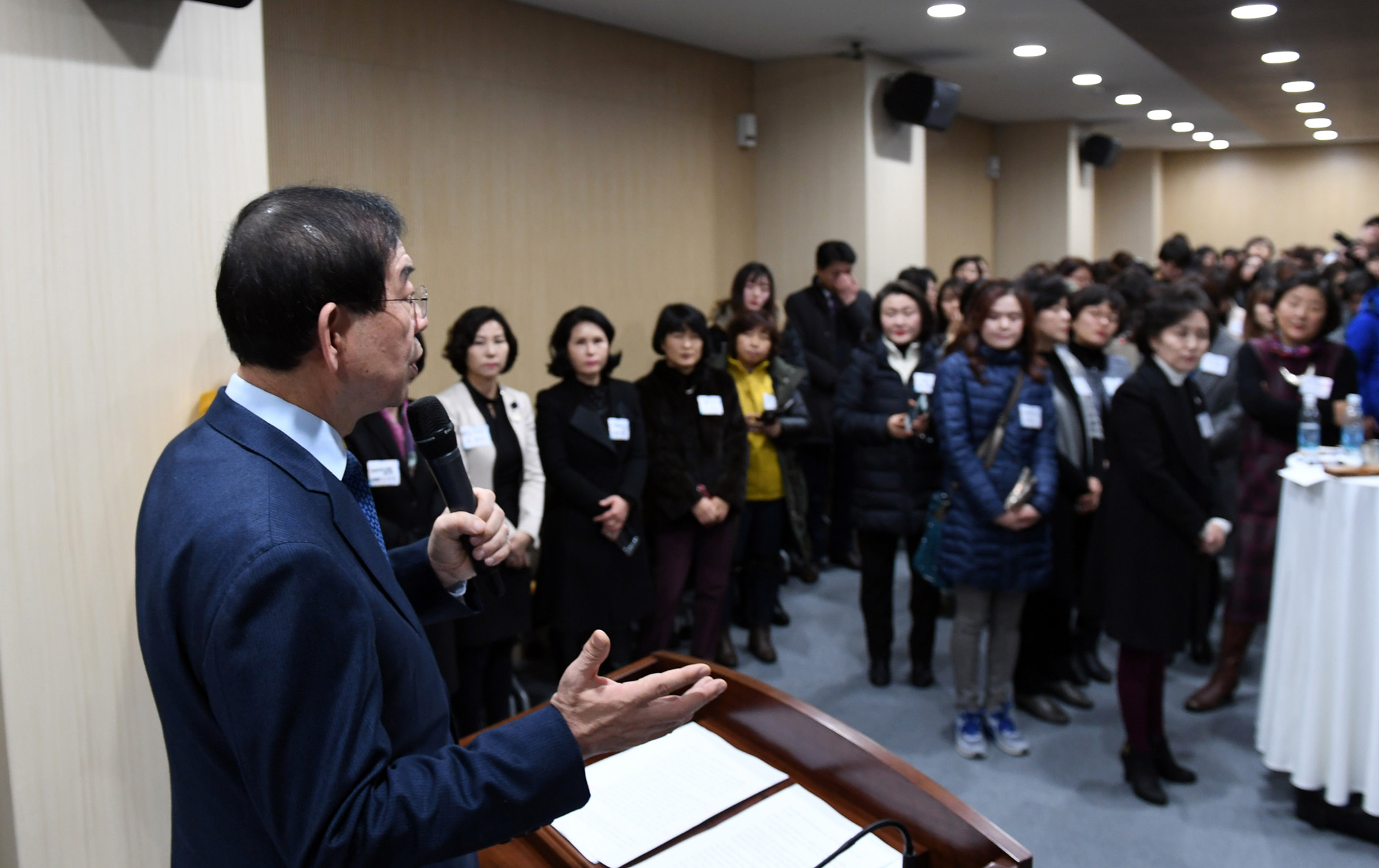 23일 오후 서울 중구 서울시의회 의원회관에서 열린 '서울시 여성리더와 함께하는 신년회'에서 박원순 서울시장이 인사말을 하고 있다. 서울시 제공