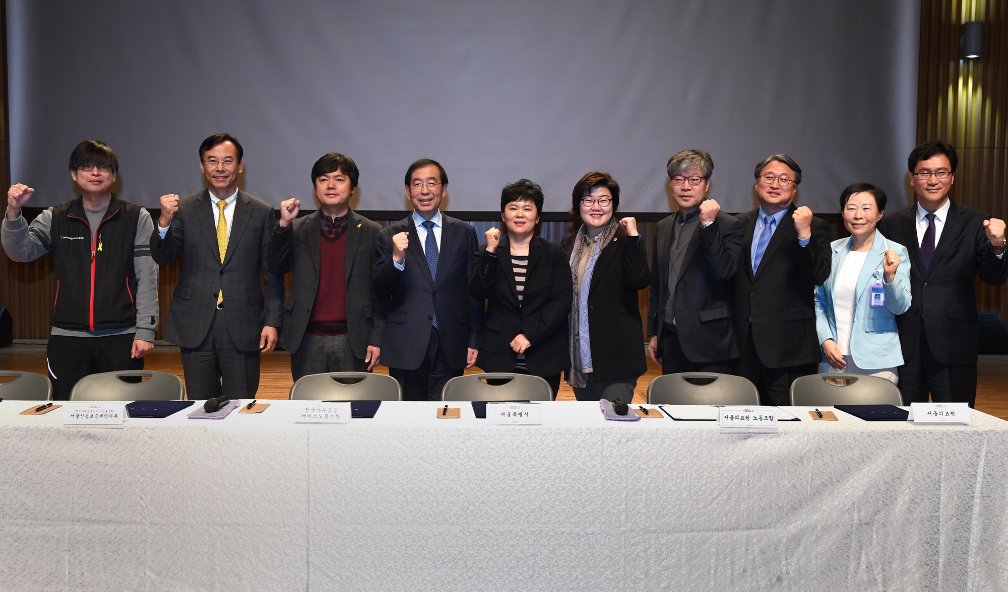 23일 오전 서울 중구 서울시청 다목적홀에서 열린 '서울형 노동시간 단축 협약식'에 참석해 서울형 노동시간 단축 추진계획을 발표하고 있다. 서울시 제공