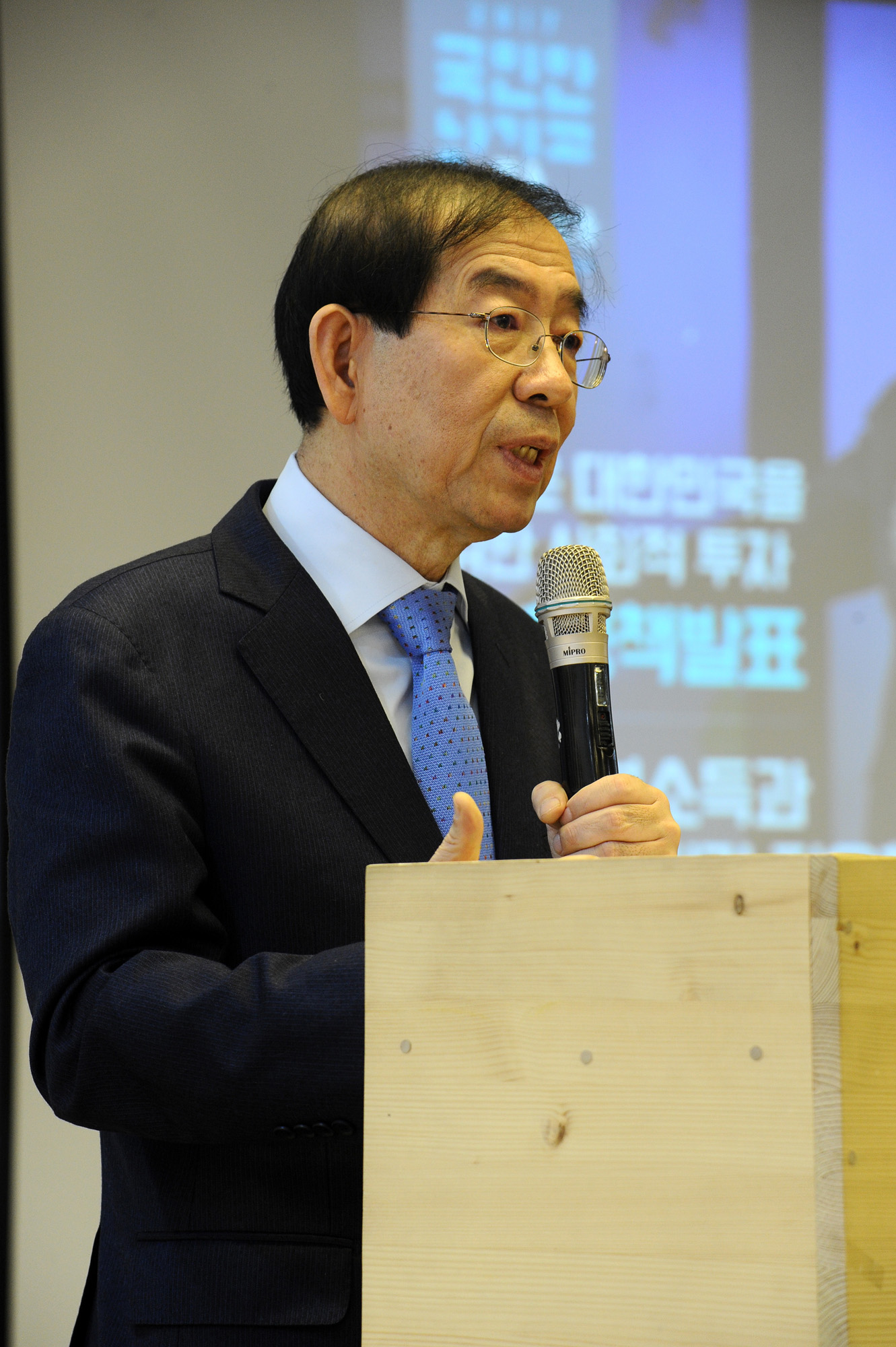 박원순 서울시장이 25일 오후 서울 중구 서울시NPO지원센터에서 청년정책발표 간담회를 갖고 있다. 서울시 제공