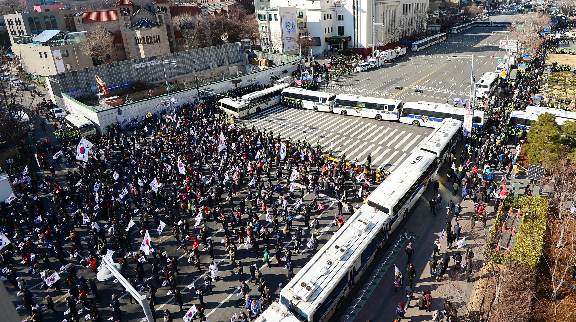 박근혜 대통령 취임 4주년을 맞은 25일 오후 서울광장에서 박 대통령의 탄핵 반대 집회를 주최하는 '대통령 탄핵기각을 위한 국민총궐기운동본부'(탄기국)의 대규모 집회가 열리고 있다. 2017.2.25