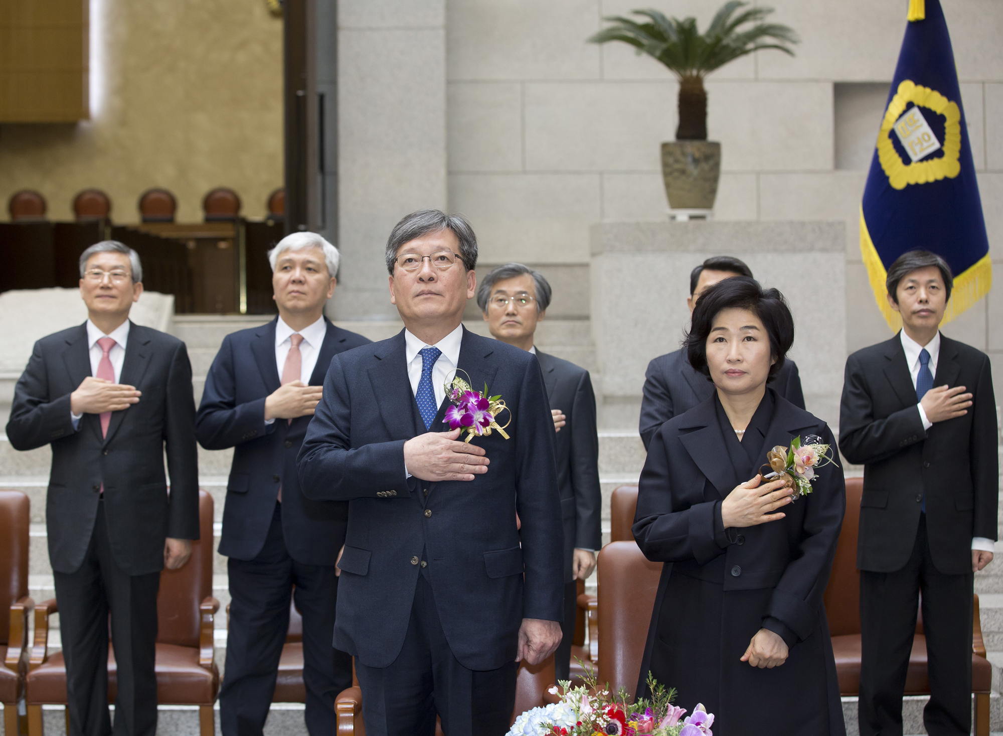 사진은 이상훈 대법관이 국민의례를 하고 있다.