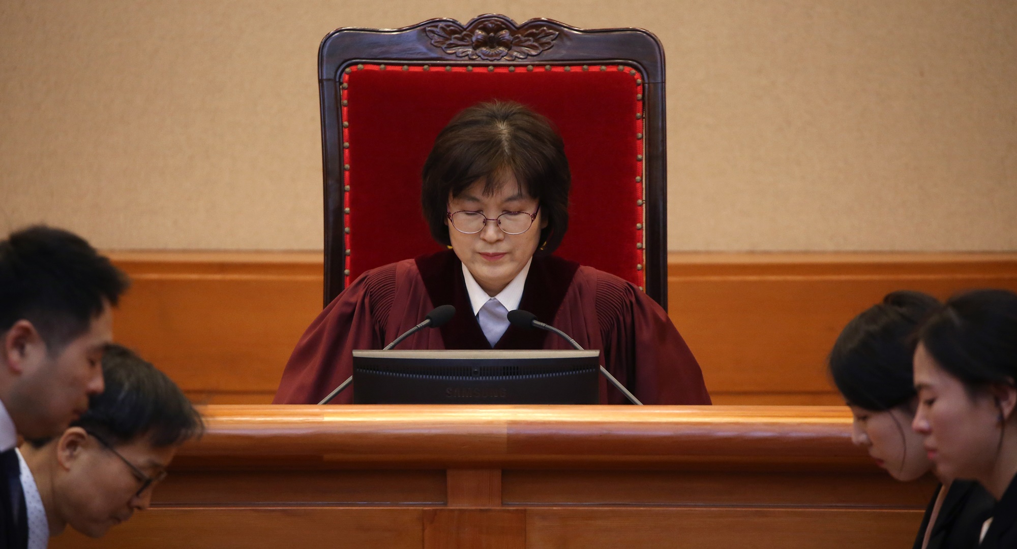 이정미 헌재소장 권한대행이 27일 서울 종로구 재동 헌법재판소 대심판정에서 열린 박근혜 대통령 탄핵심판 최종변론에 참석하고 있다.