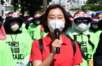 정의당 여영국 대표, 김재연 대선후보 국민건강보험고객센터노조 직접고용 촉구 청와대 도보행진 및 기자회견