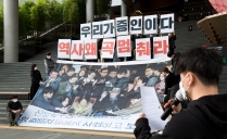 강제동원 배상판결 2년, '역사왜곡멈춰라' 퍼포먼스