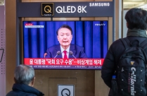 서울역에서 비상계엄 해제 뉴스 시청하는 시민들