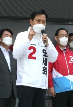 오세훈 국민의힘 서울시장 후보 시청역 유세 , 안철수 지지연설