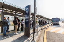 셔틀버스 기다리는 서울 시내 대형 종합병원 진료 환자와 이용객들