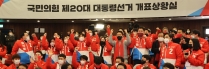 20대 대통령선거 국민의힘 개표 상황실-득표율 역전에 환호