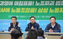 국회 환경미화노조 직접고용 해결 관련 꽃다발 받는 김종인